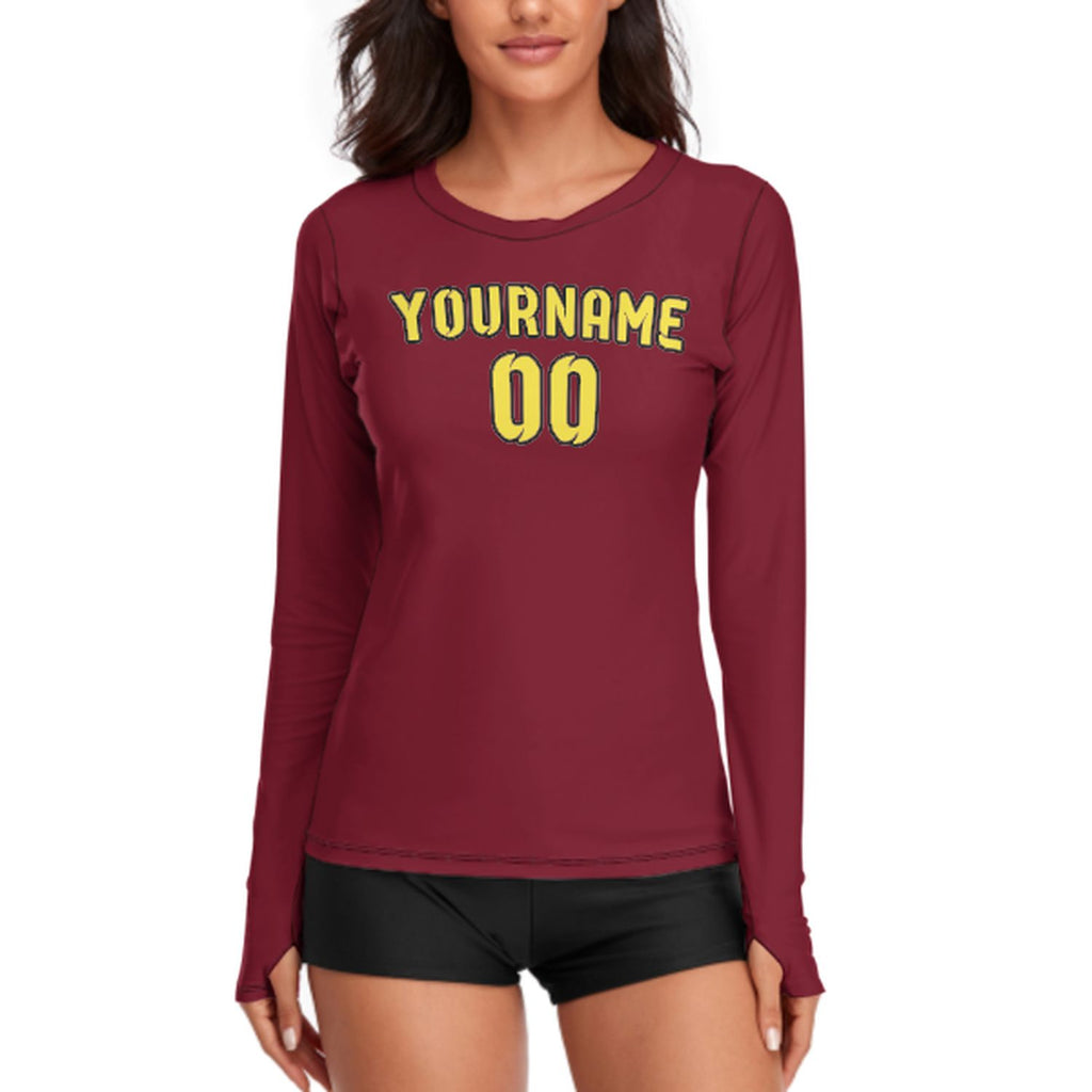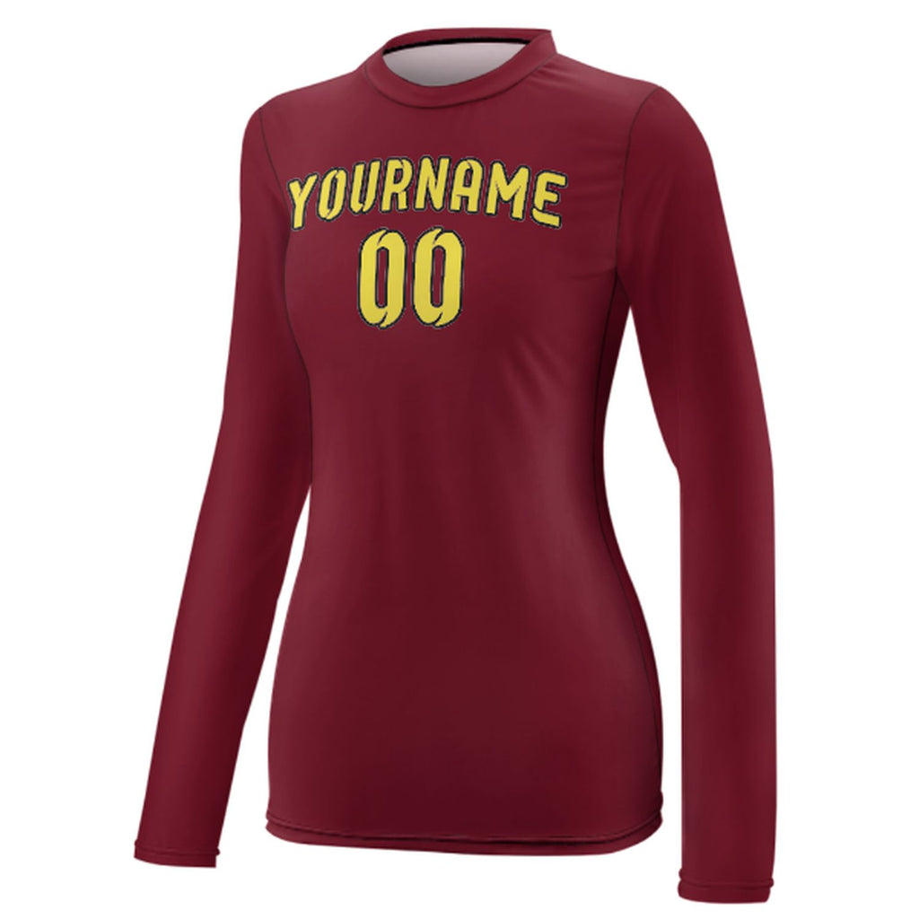 Custom Crimson Red Light Yellow Women's Long-Sleeve Shirt
