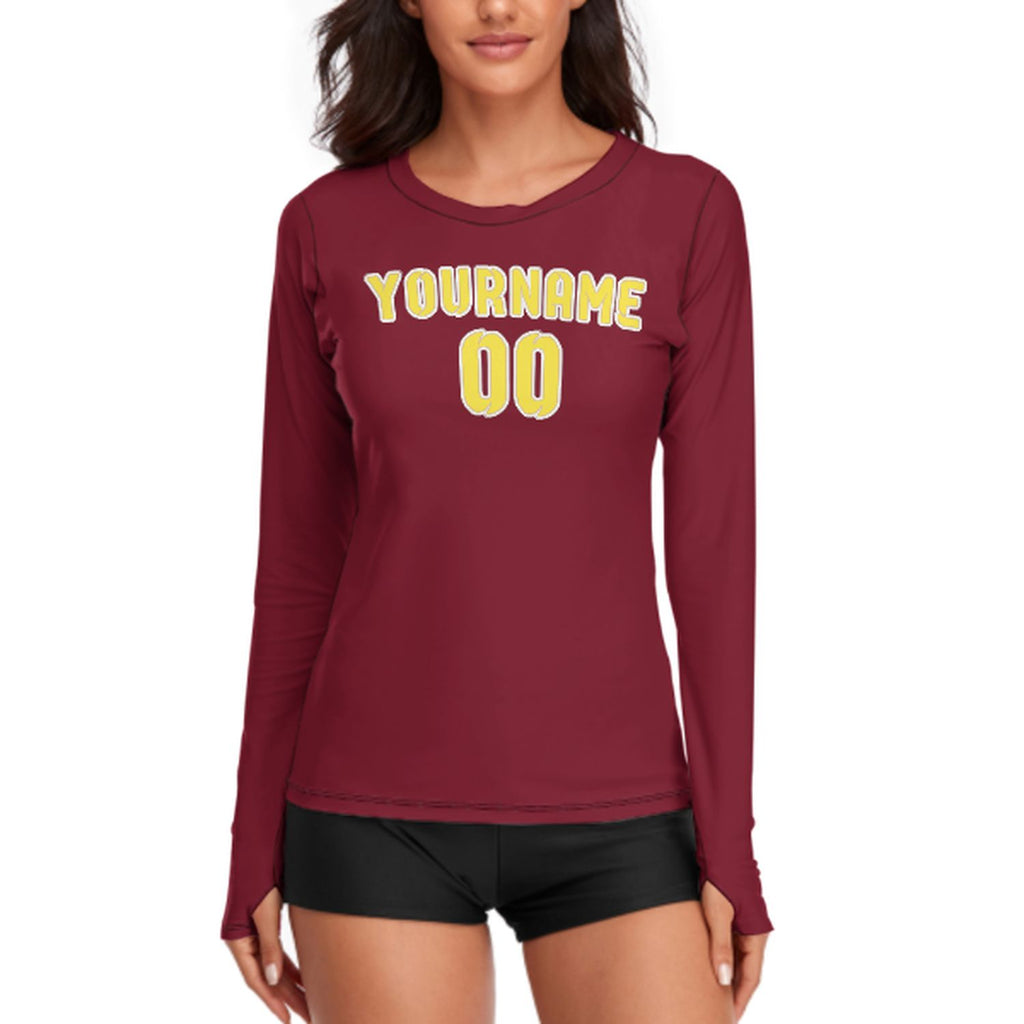Custom Crimson Red Light Yellow Women's Long-Sleeve Shirt