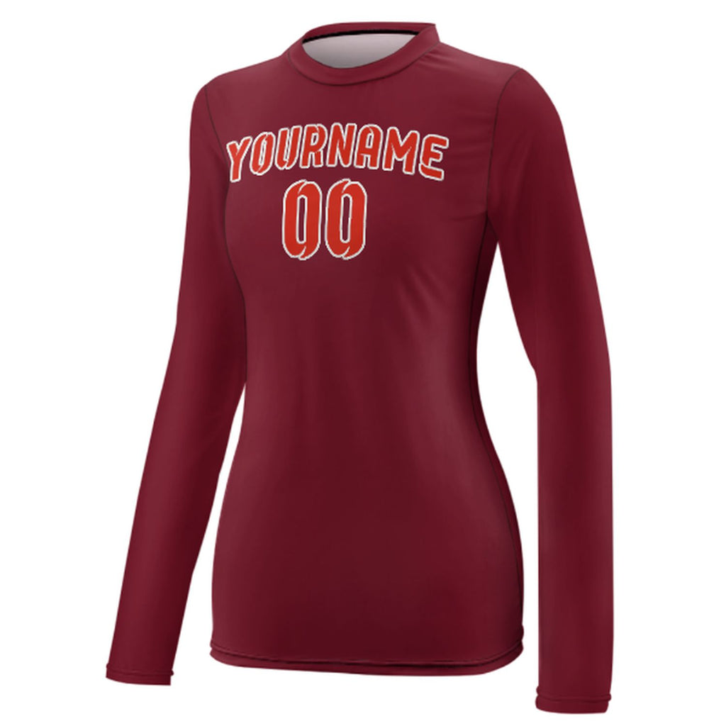 Custom Crimson Red Orange Red Women's Long-Sleeve Shirt