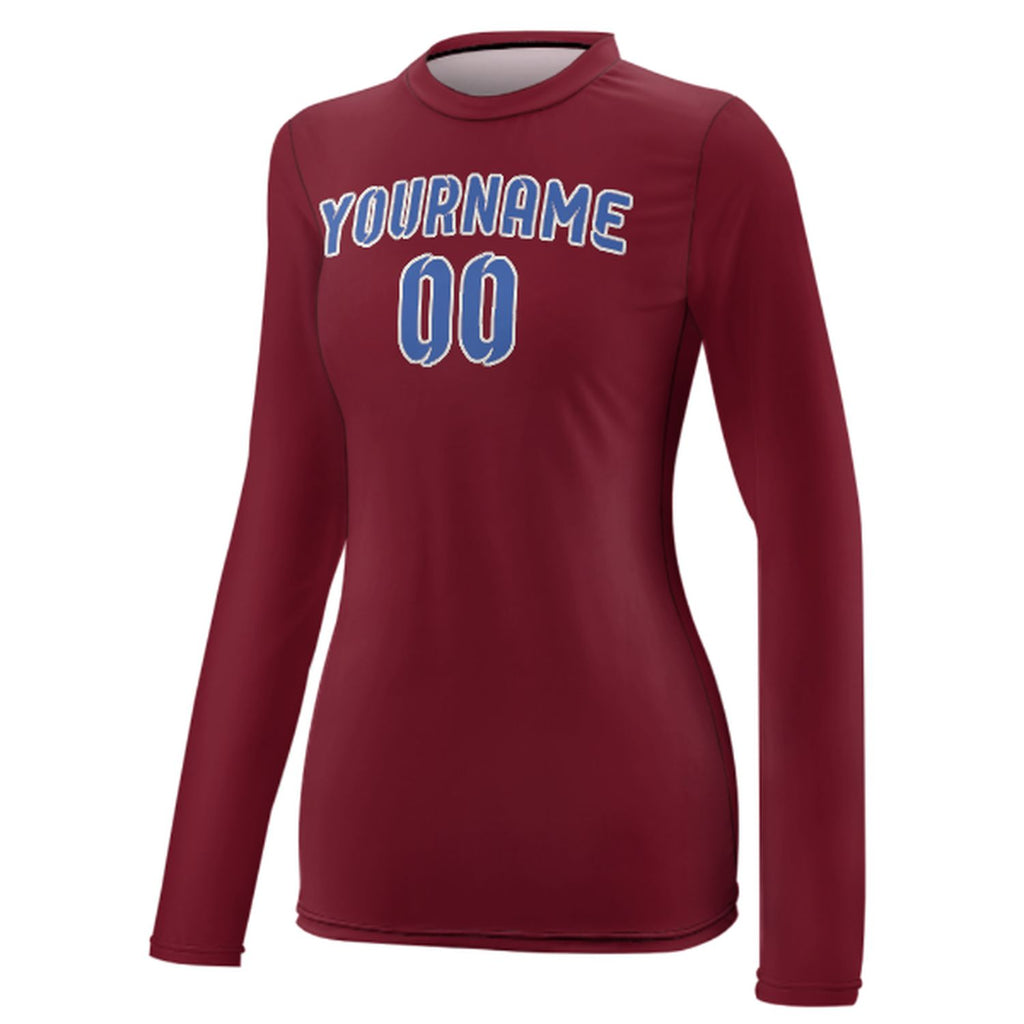 Custom Crimson Red Sky Blue Women's Long-Sleeve Shirt