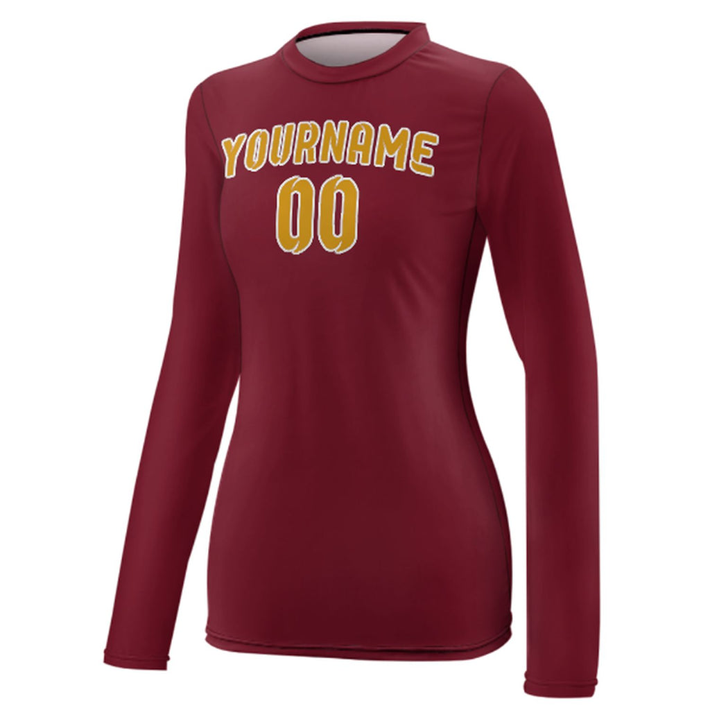 Custom Crimson Red Yellow Women's Long-Sleeve Shirt