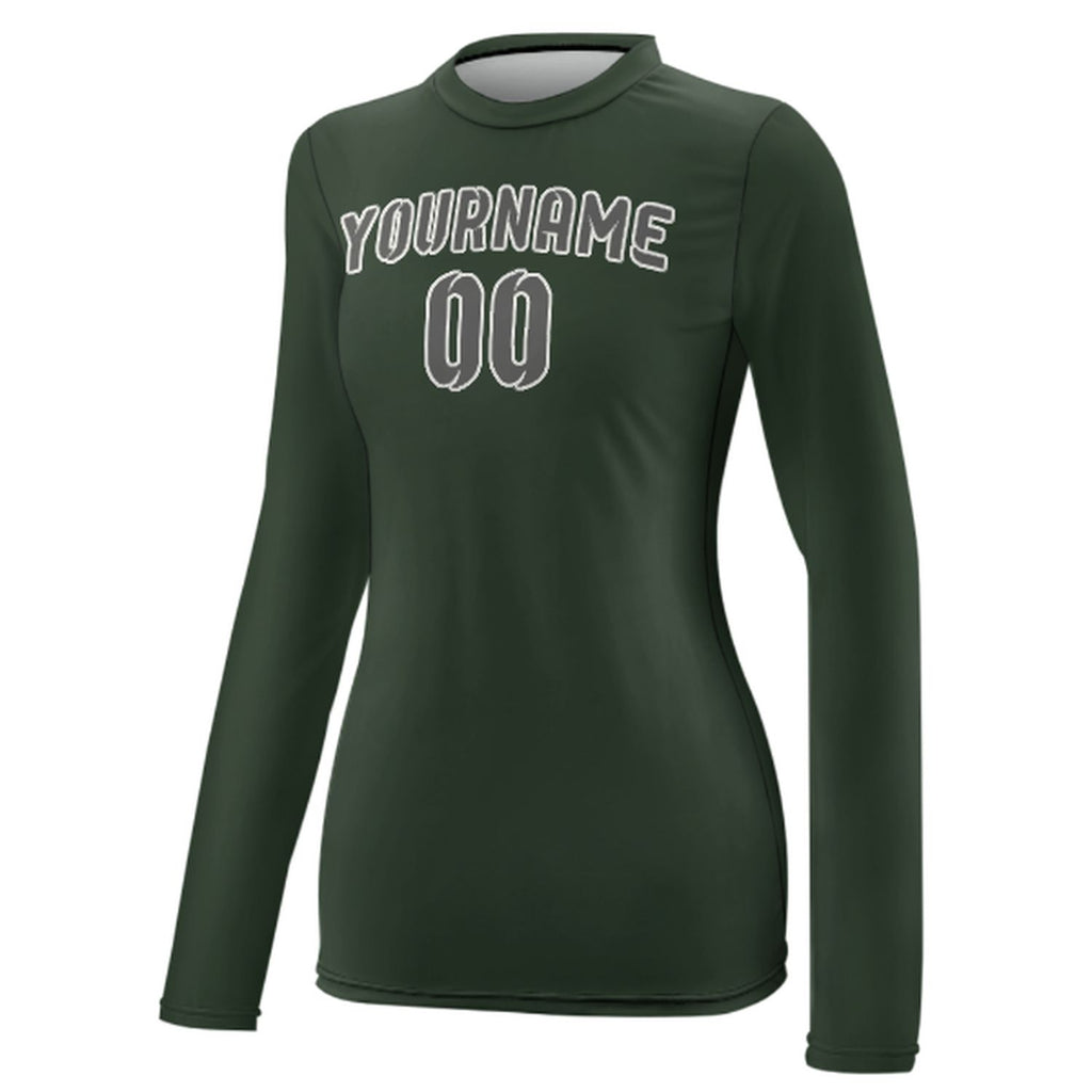 Custom Dark Green Dark Grey Women's Long-Sleeve Shirt