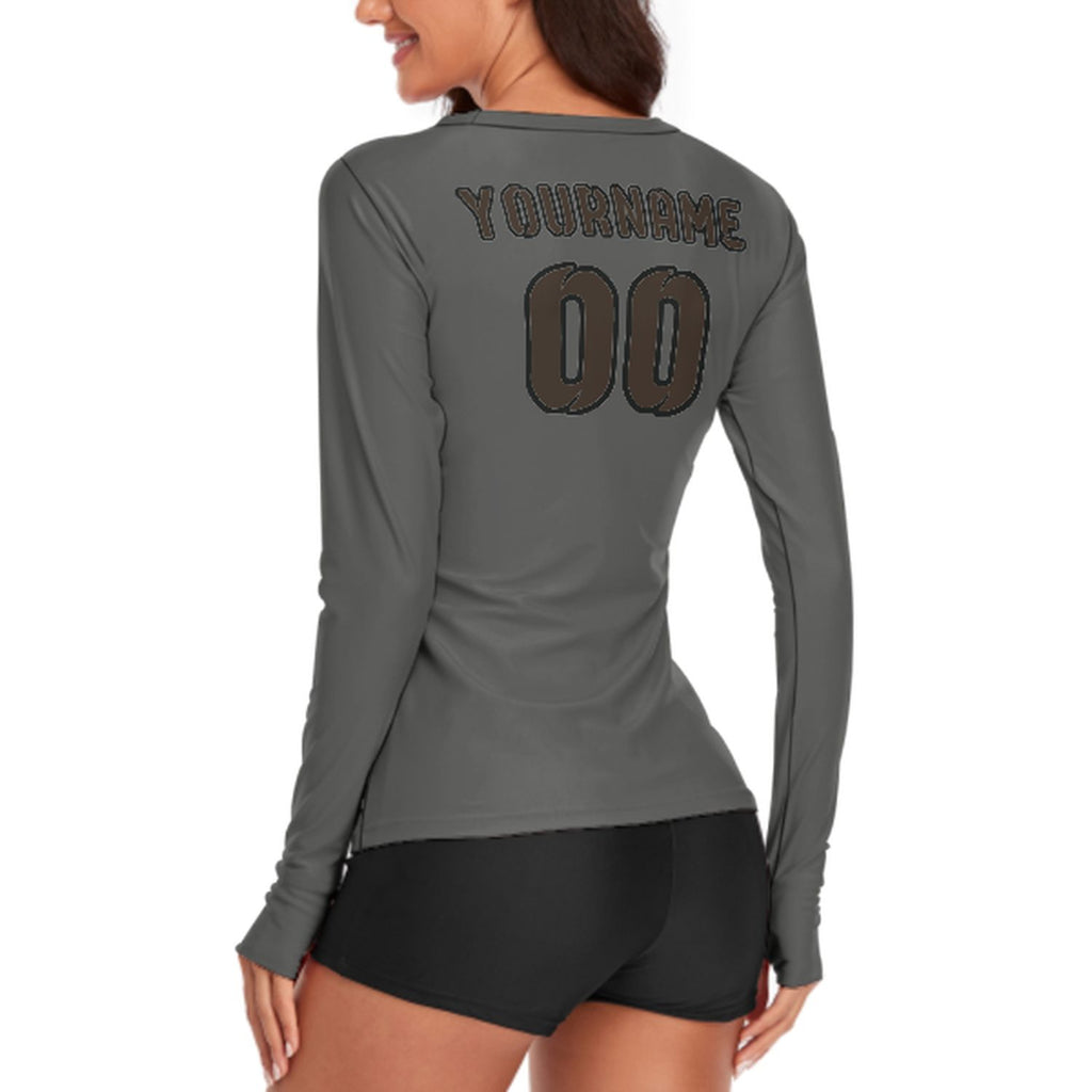 Custom Dark Grey Brown Women's Long-Sleeve Shirt