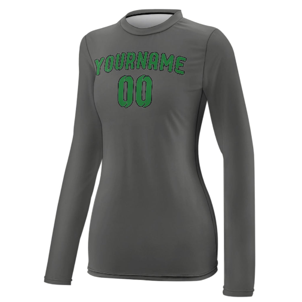 Custom Dark Grey Emerald Green Women's Long-Sleeve Shirt