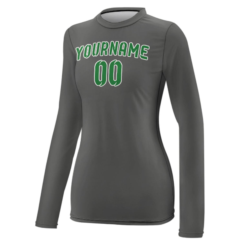 Custom Dark Grey Emerald Green Women's Long-Sleeve Shirt