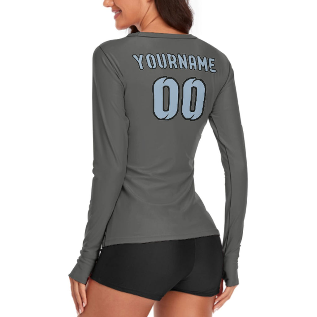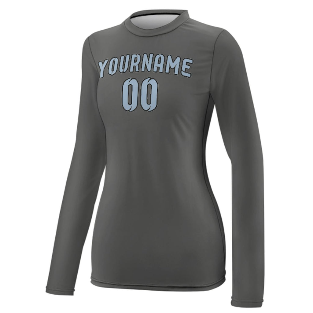 Custom Dark Grey Light Blue Women's Long-Sleeve Shirt