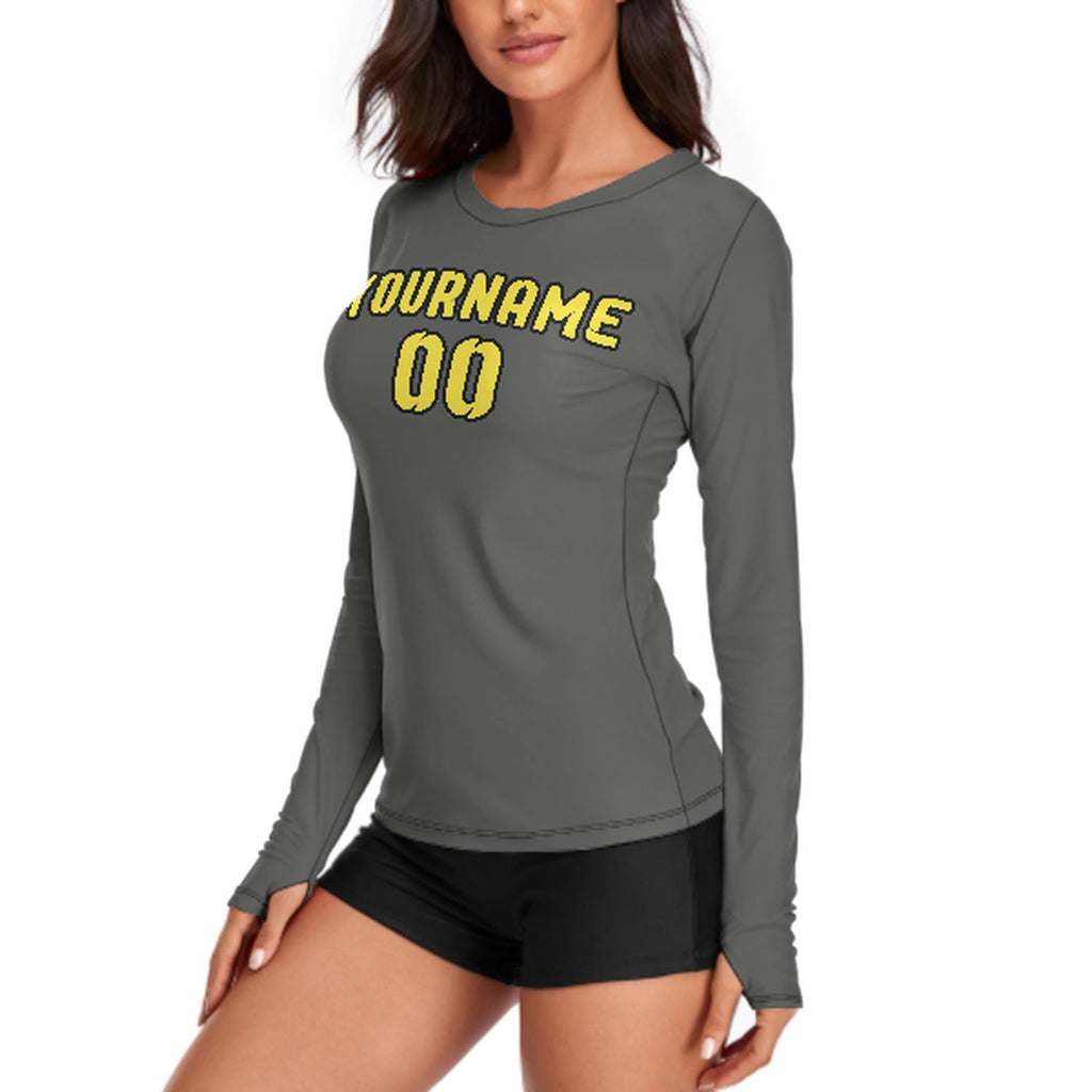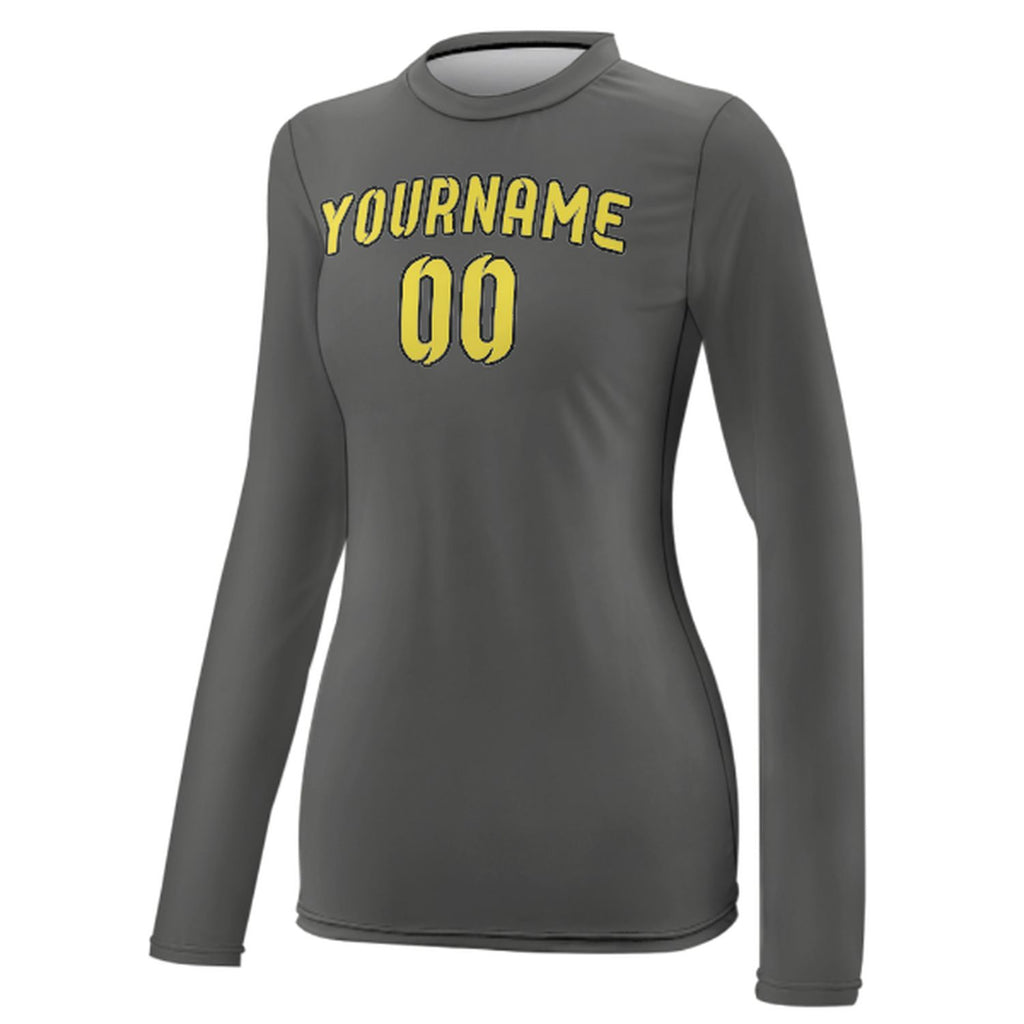 Custom Dark Grey Light Yellow Women's Long-Sleeve Shirt