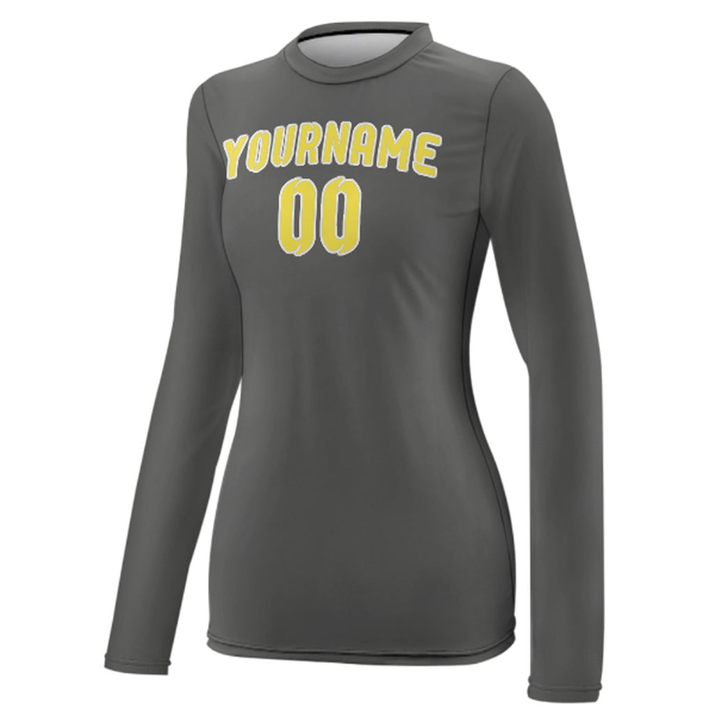 Custom Dark Grey Light Yellow Women's Long-Sleeve Shirt