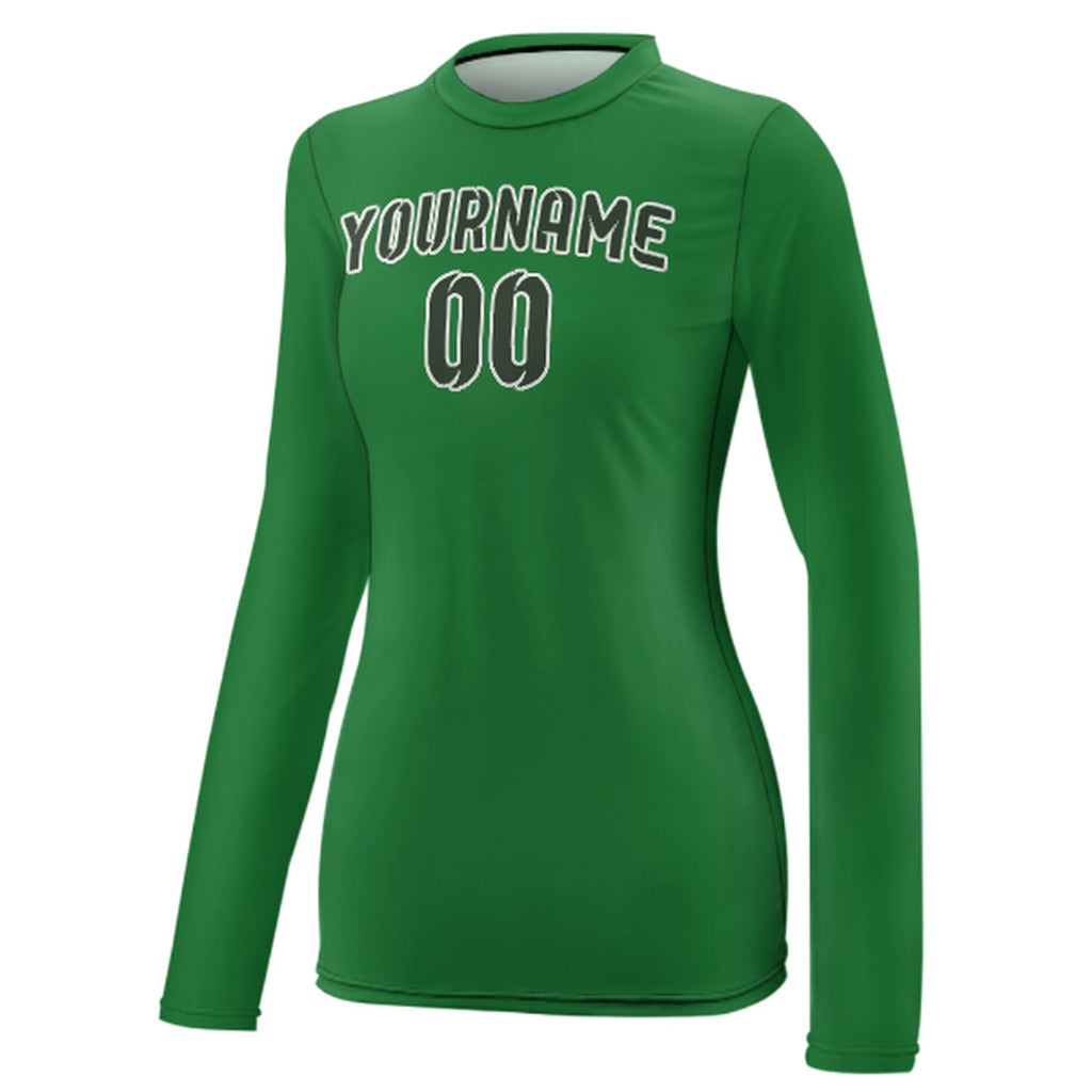 Custom Emerald Green Dark Green Women's Long-Sleeve Shirt