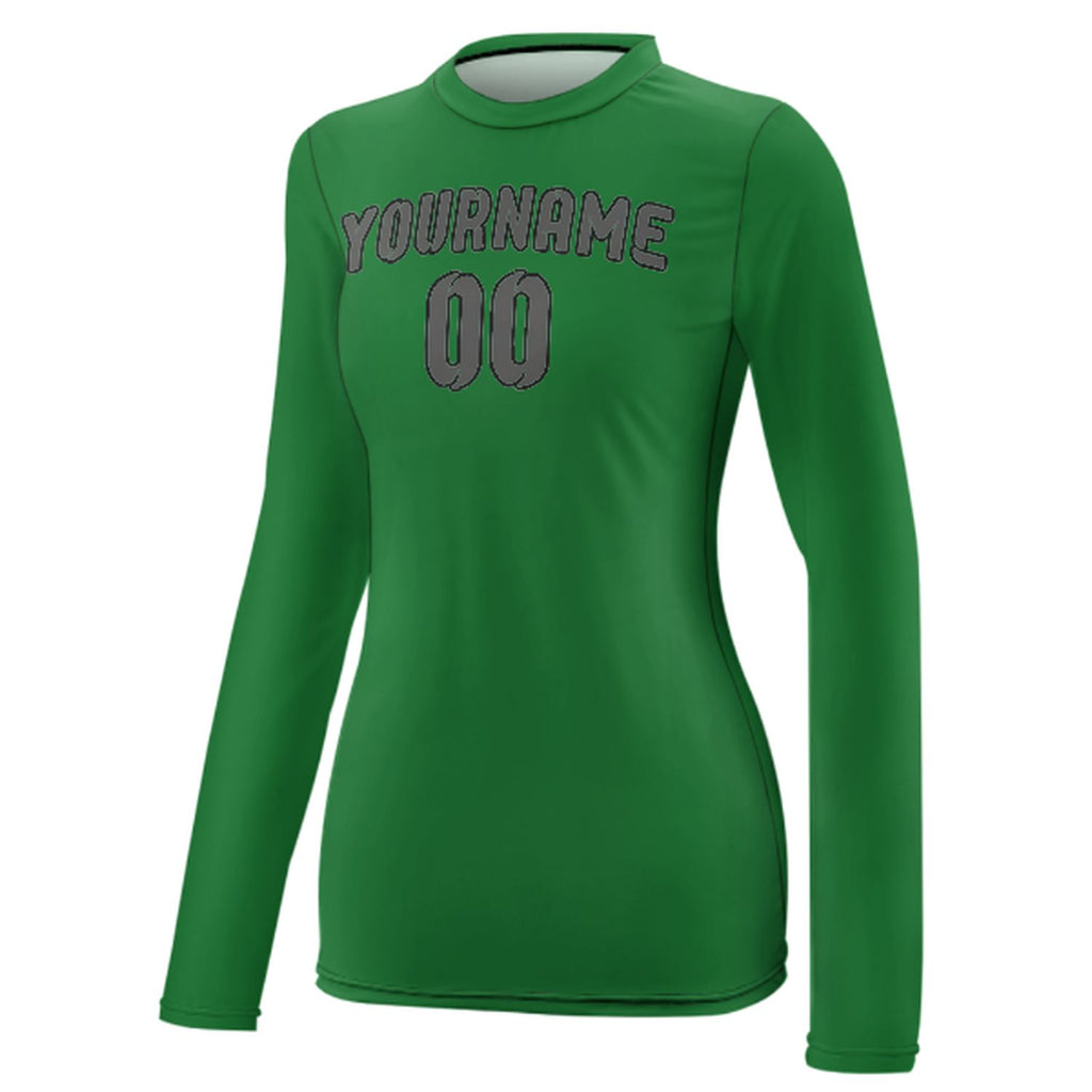 Custom Emerald Green Dark Grey Women's Long-Sleeve Shirt