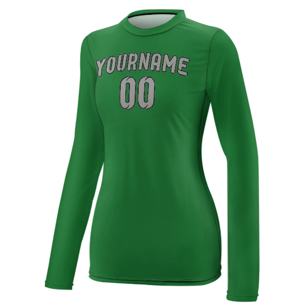 Custom Emerald Green Gray Women's Long-Sleeve Shirt