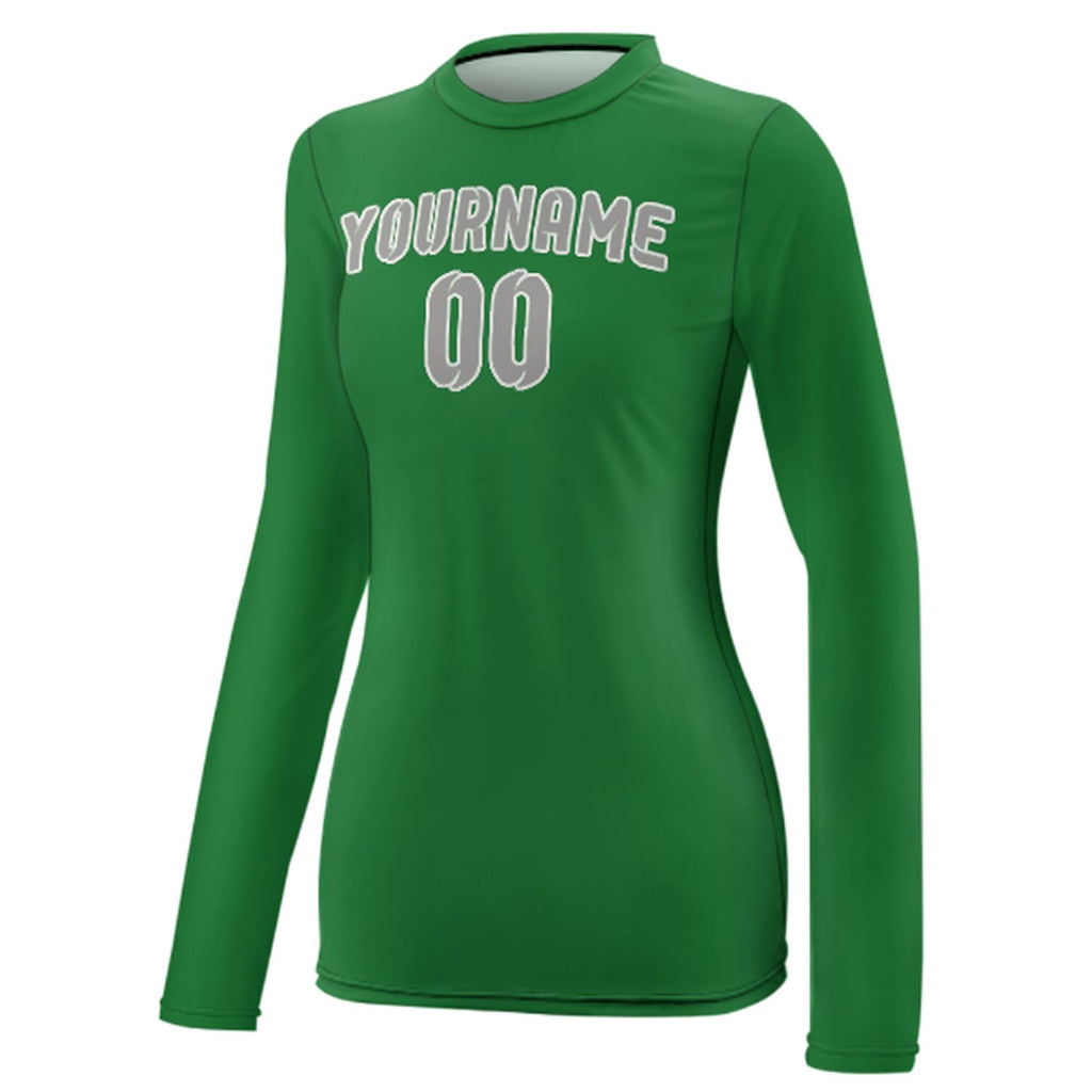 Custom Emerald Green Gray Women's Long-Sleeve Shirt