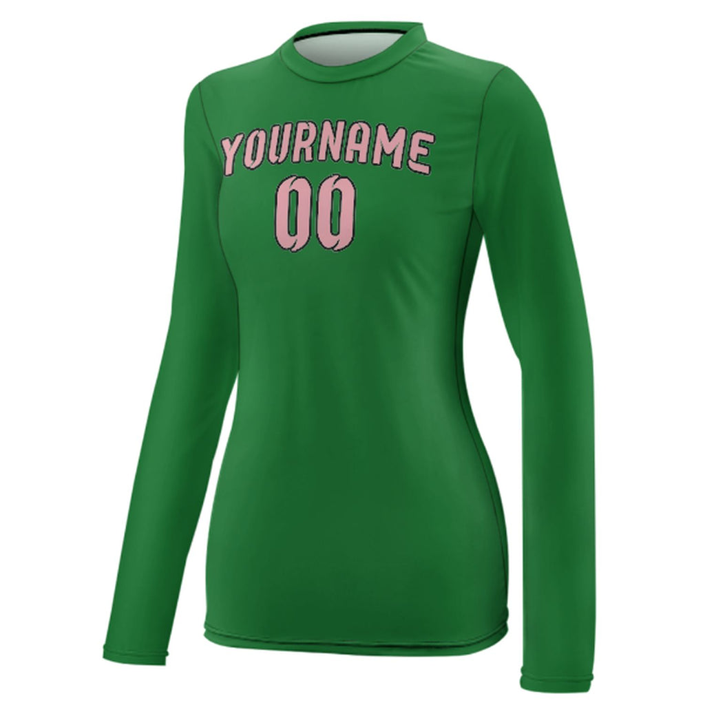 Custom Emerald Green Light Pink Women's Long-Sleeve Shirt
