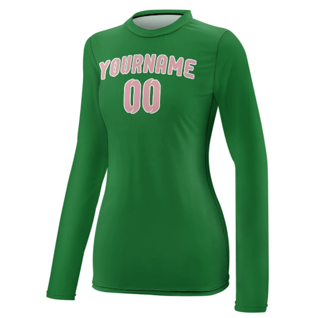 Custom Emerald Green Light Pink Women's Long-Sleeve Shirt