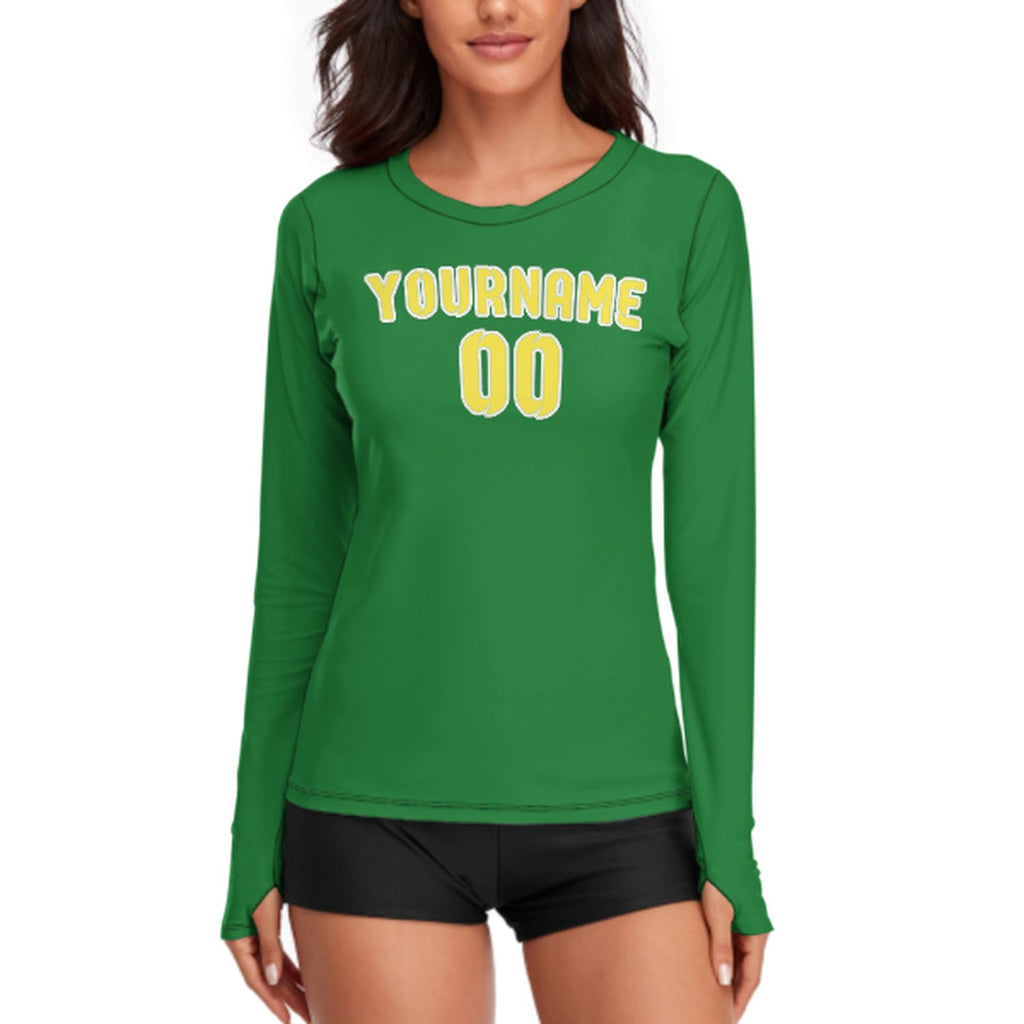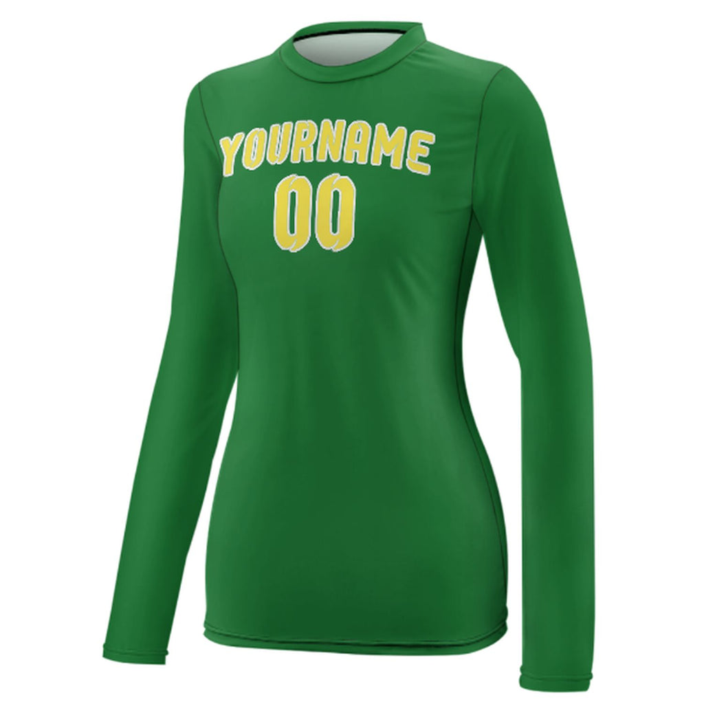 Custom Emerald Green Light Yellow Women's Long-Sleeve Shirt