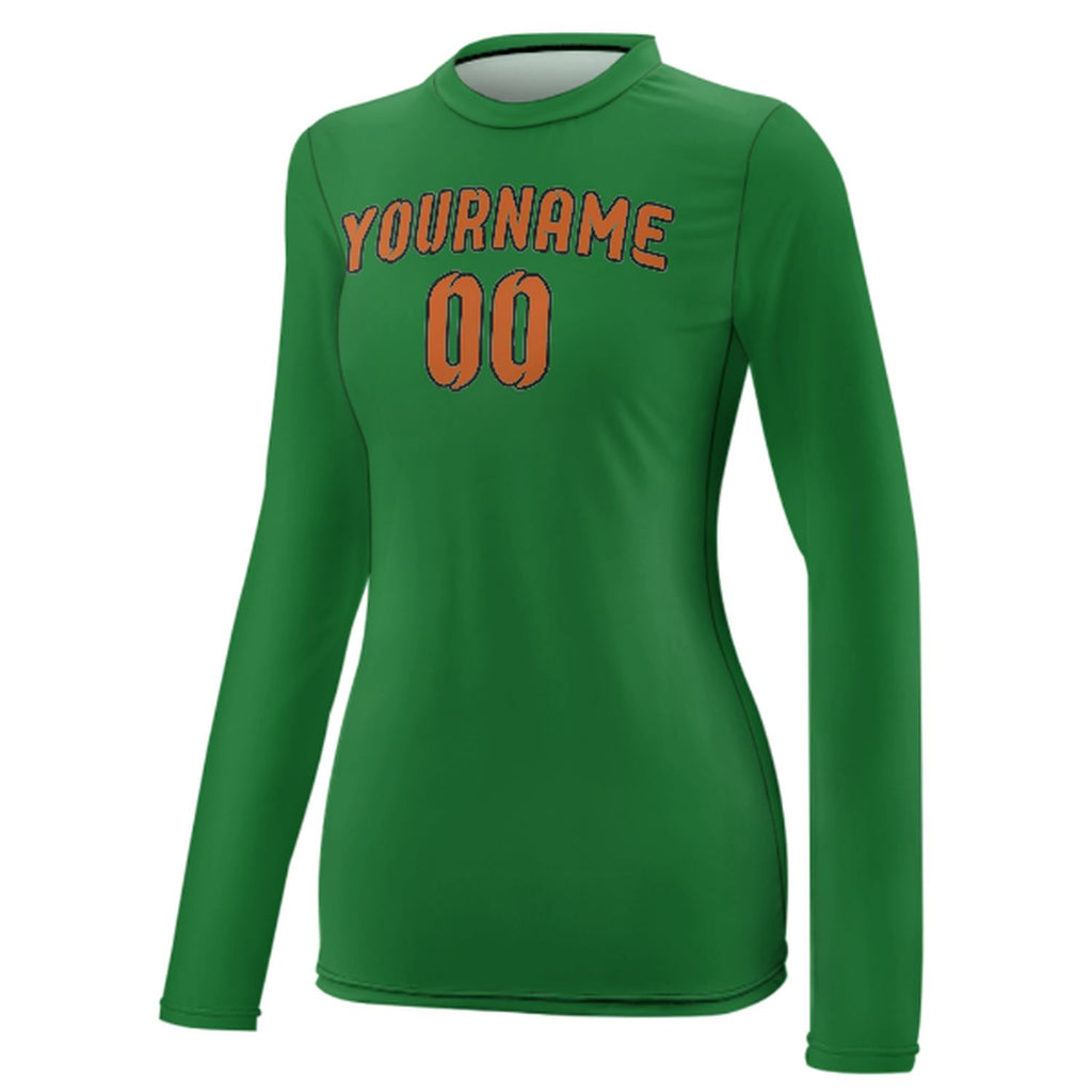 Custom Emerald Green Orange Women's Long-Sleeve Shirt