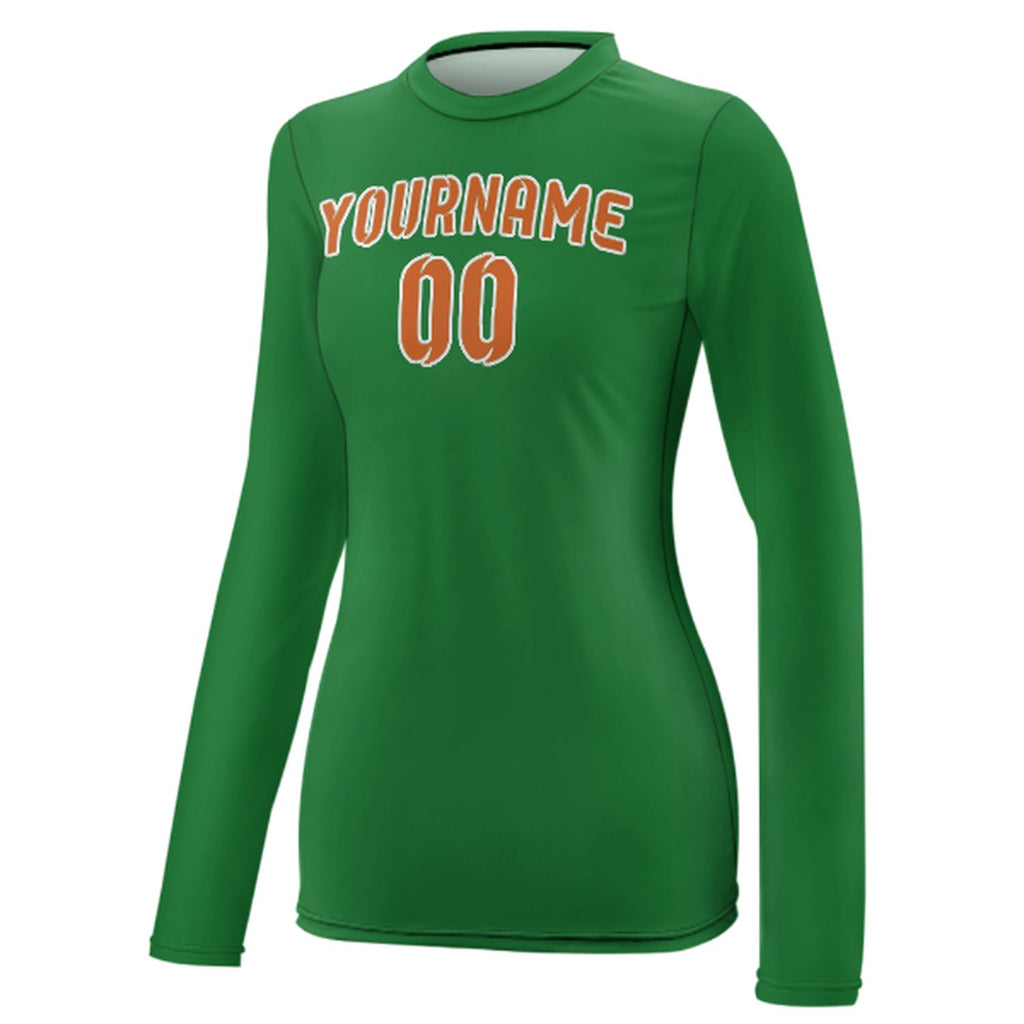 Custom Emerald Green Orange Women's Long-Sleeve Shirt