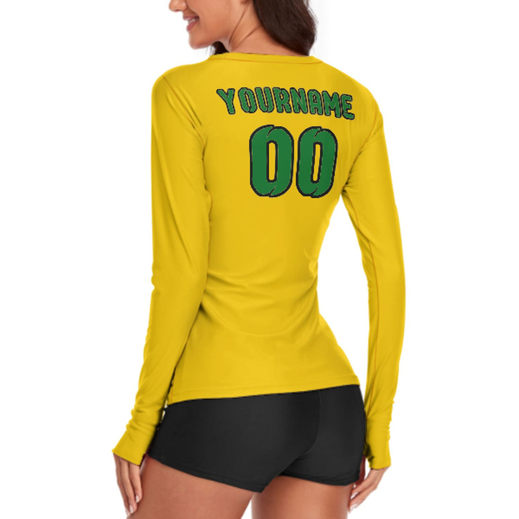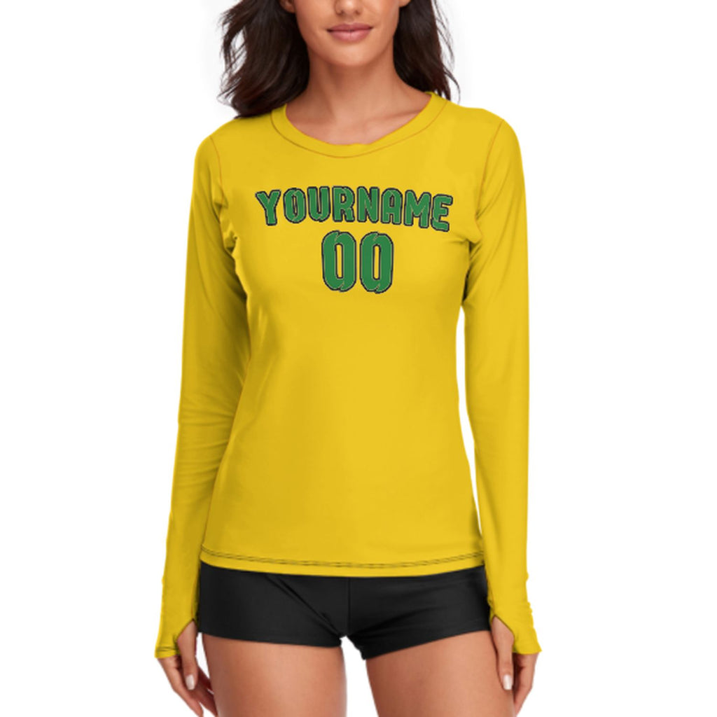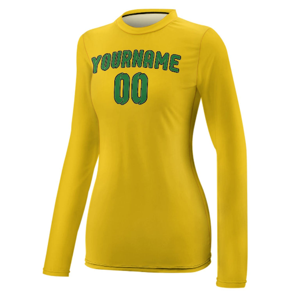 Custom Gold Emerald Green Women's Long-Sleeve Shirt