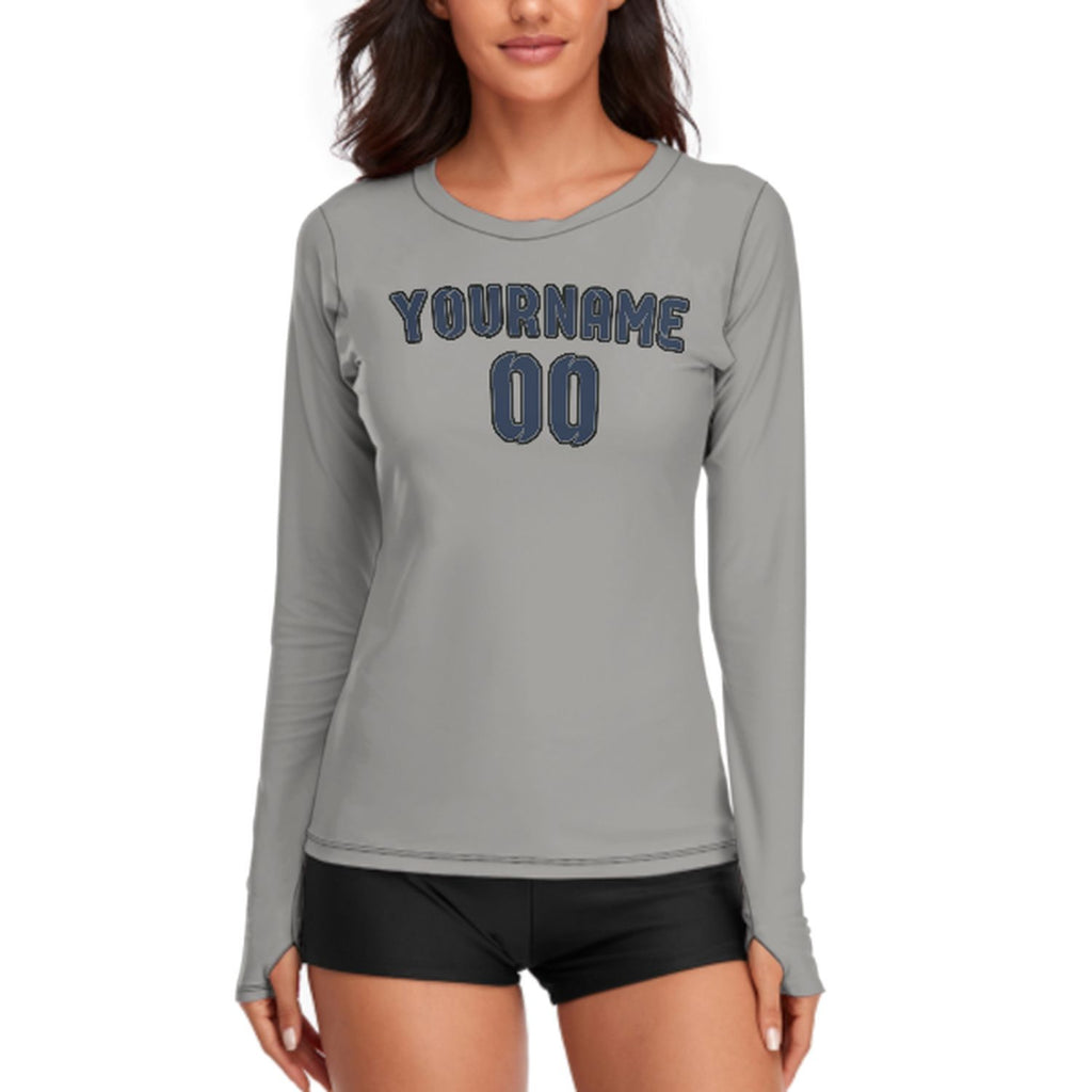 Custom Gray Blue Women's Long-Sleeve Shirt