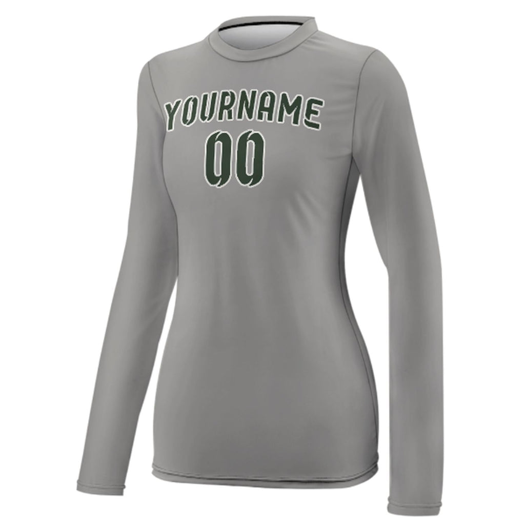 Custom Gray Dark Green Women's Long-Sleeve Shirt