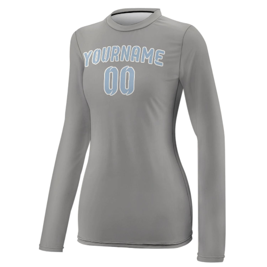 Custom Gray Light Blue Women's Long-Sleeve Shirt