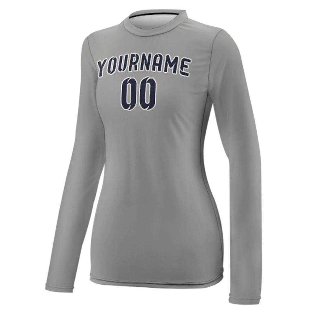 Custom Gray Navy Women's Long-Sleeve Shirt