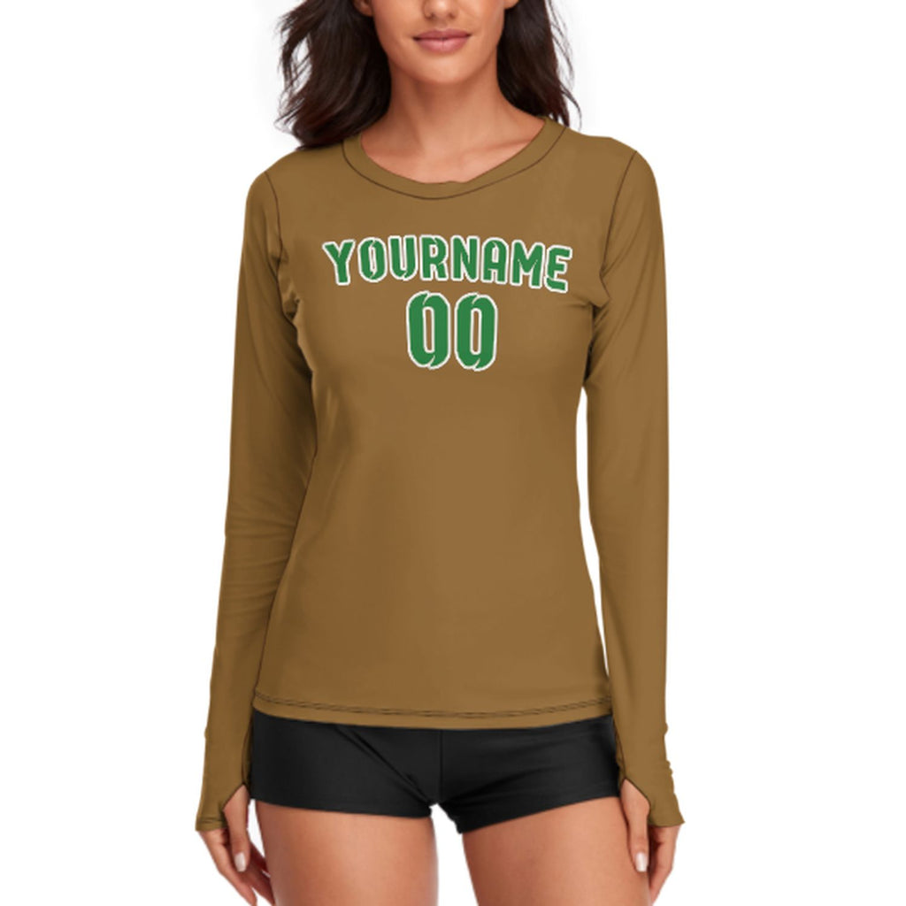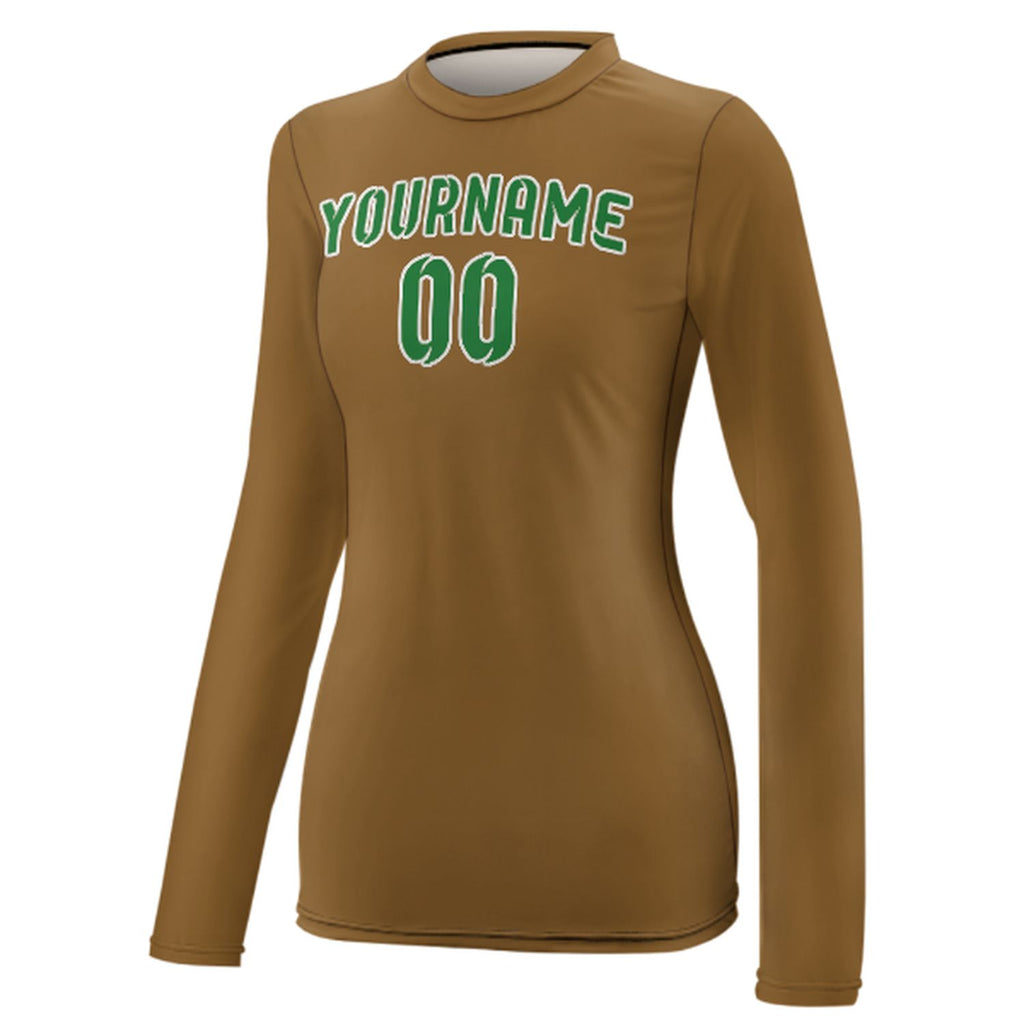 Custom Khaki Emerald Green Women's Long-Sleeve Shirt