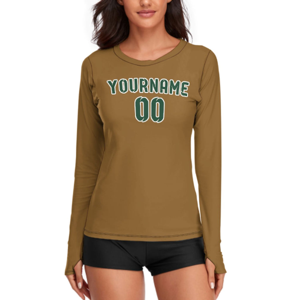 Custom Khaki Green Women's Long-Sleeve Shirt