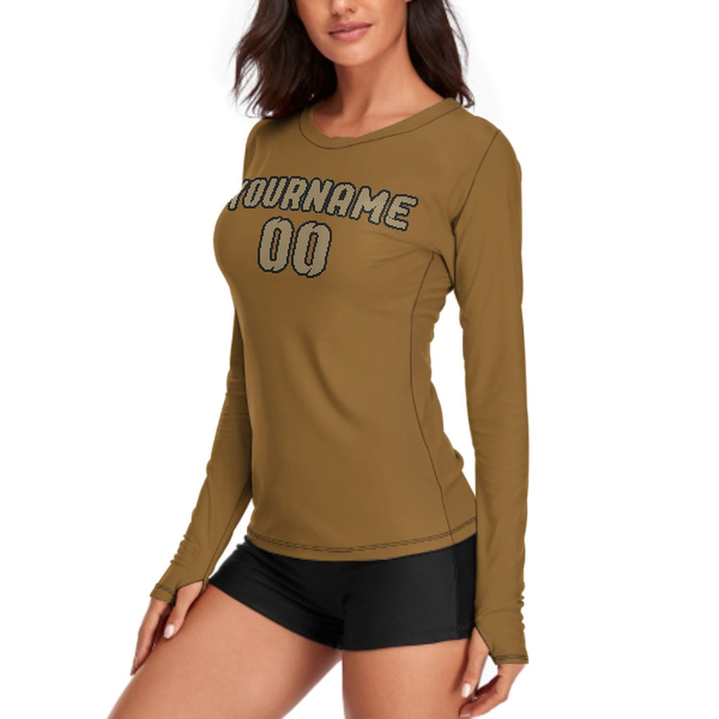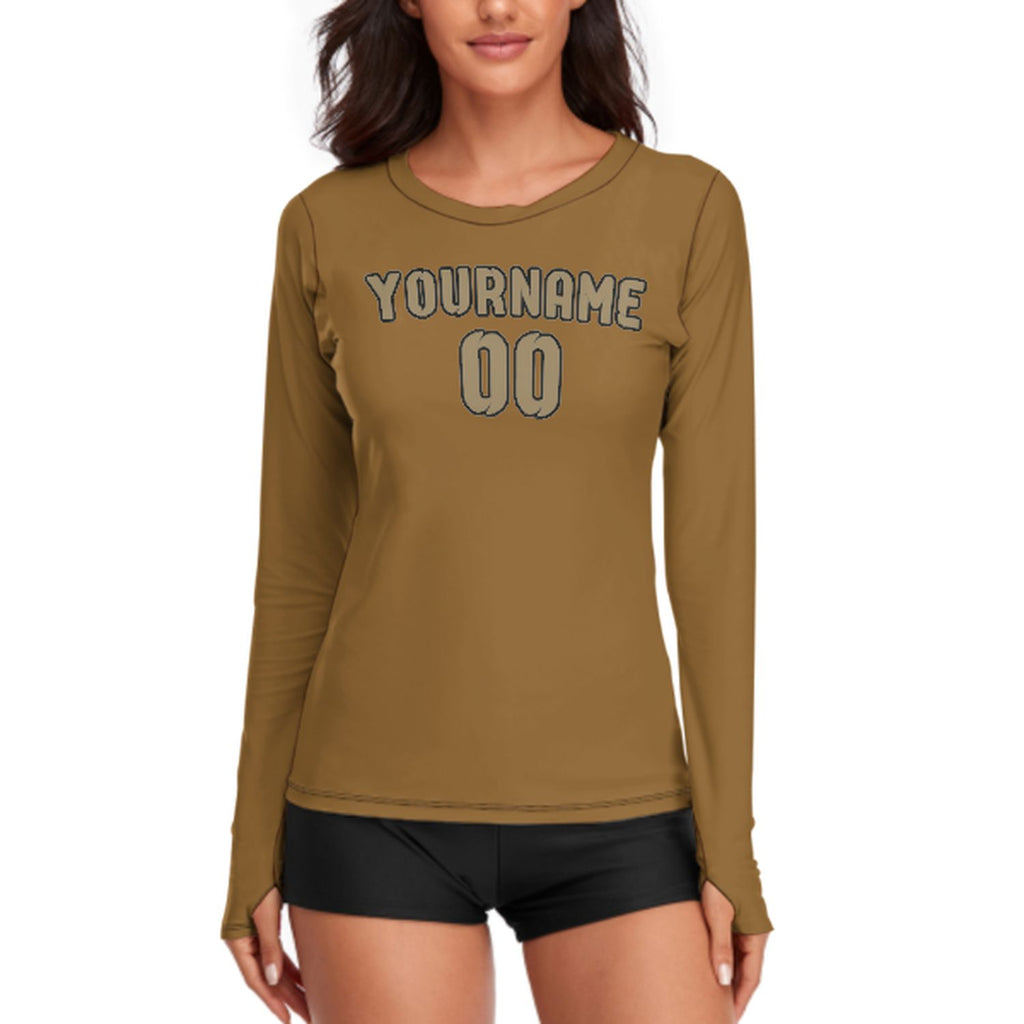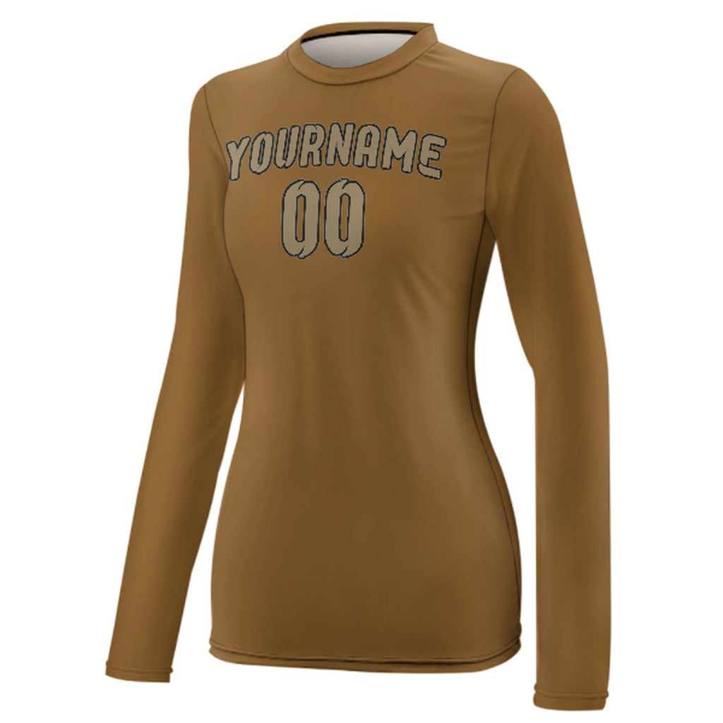 Custom Khaki Light Khaki Women's Long-Sleeve Shirt