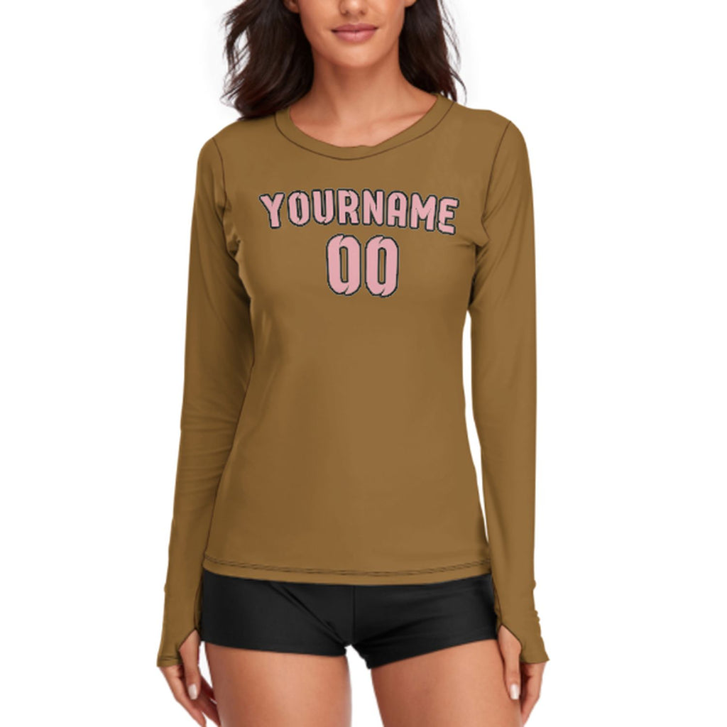 Custom Khaki Light Pink Women's Long-Sleeve Shirt