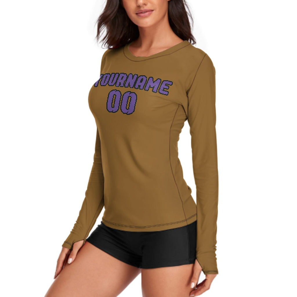 Custom Khaki Light Purple Women's Long-Sleeve Shirt