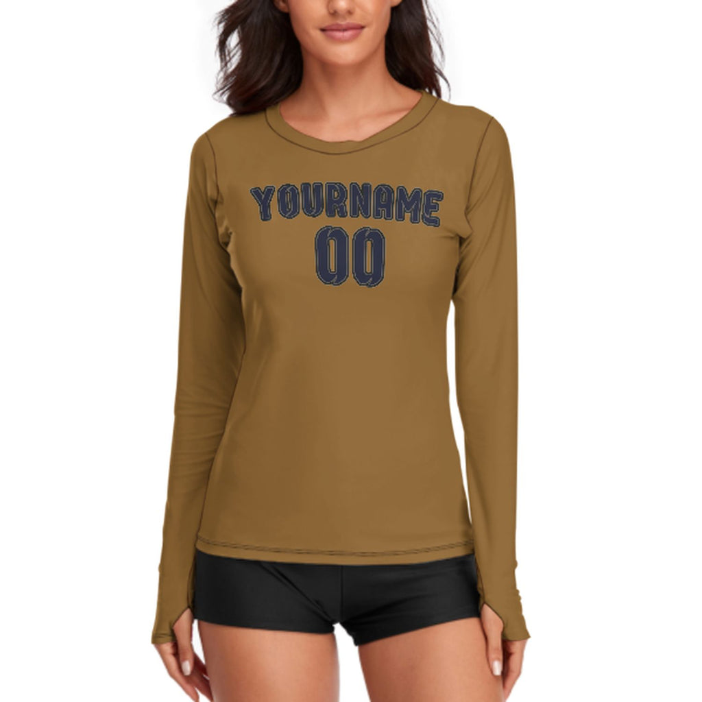 Custom Khaki Navy Women's Long-Sleeve Shirt