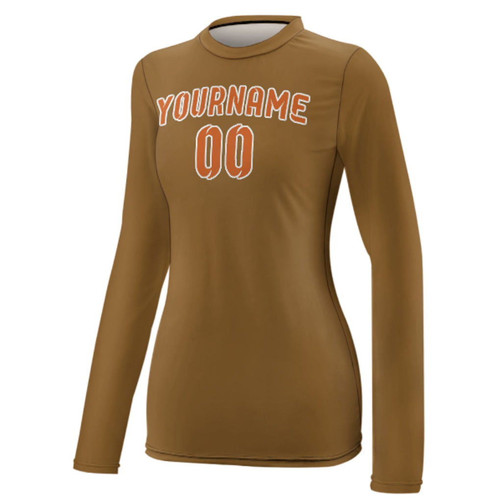 Custom Khaki Orange Women's Long-Sleeve Shirt