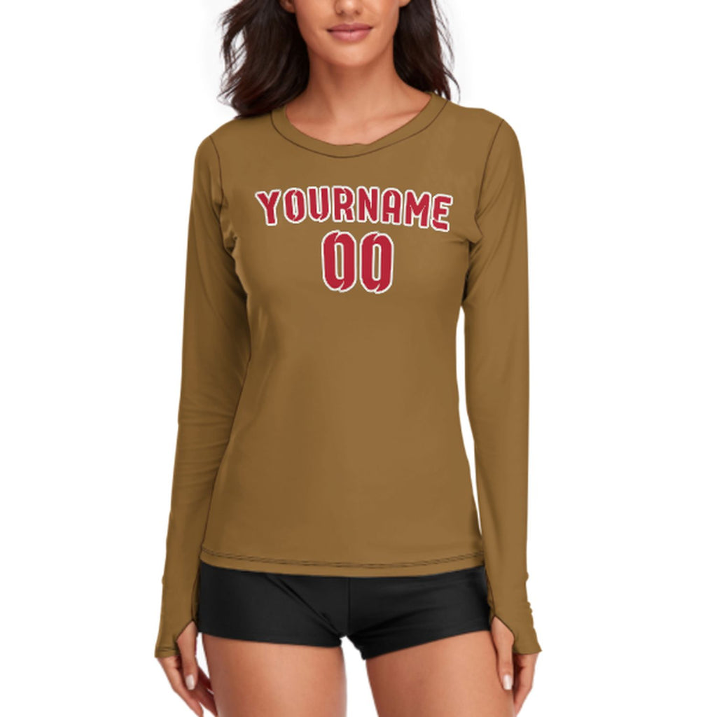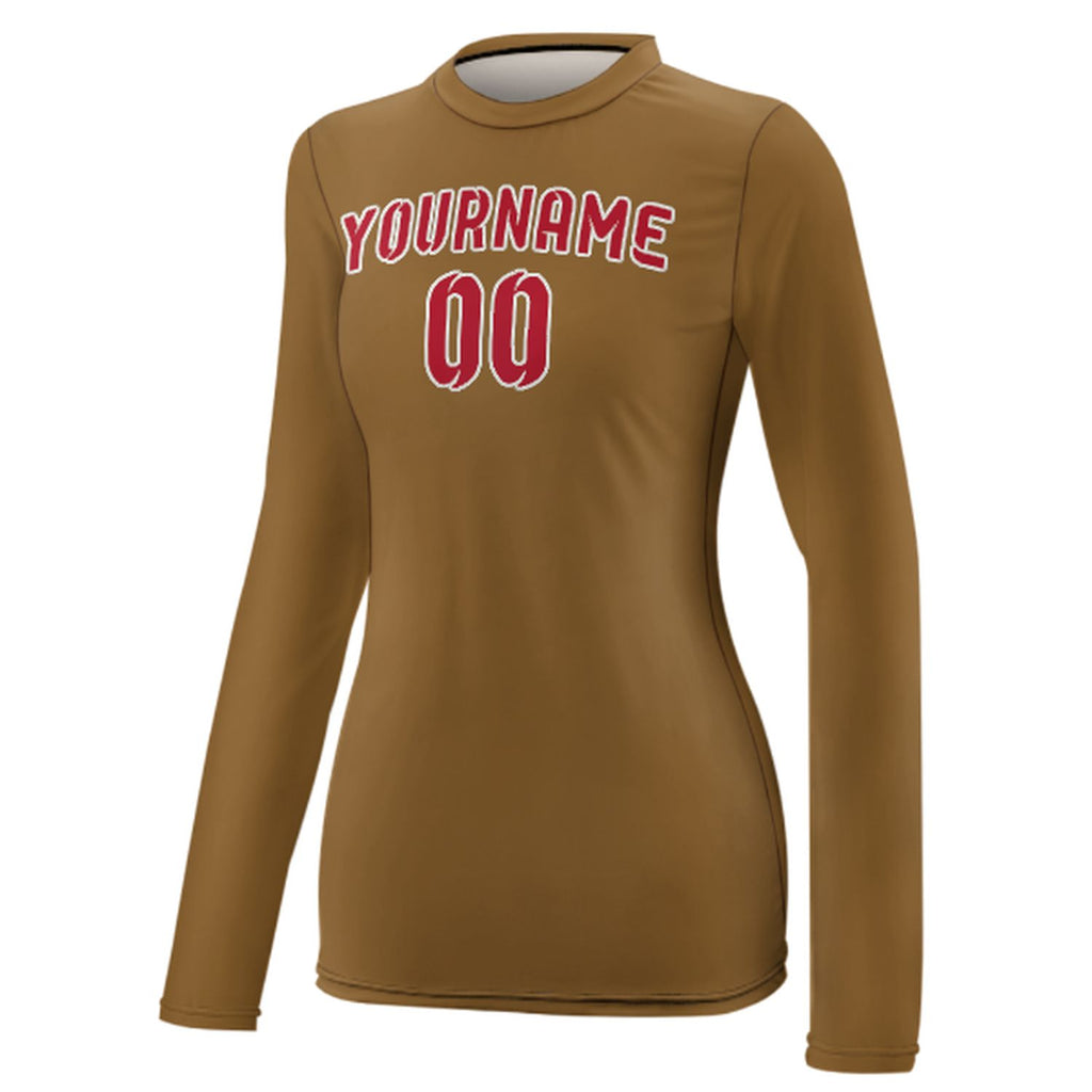 Custom Khaki Red Women's Long-Sleeve Shirt
