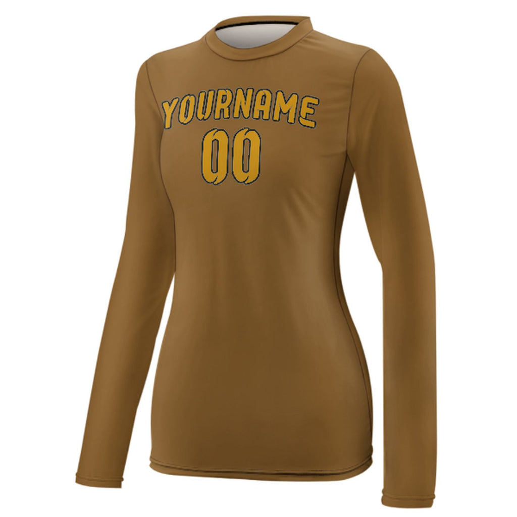 Custom Khaki Yellow Women's Long-Sleeve Shirt