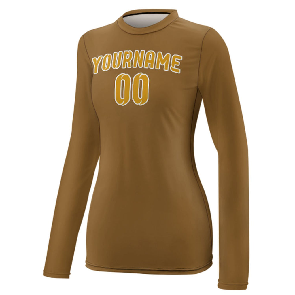 Custom Khaki Yellow Women's Long-Sleeve Shirt