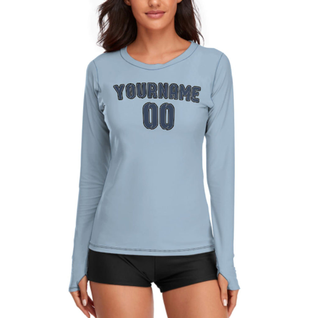 Custom Light Blue Blue Women's Long-Sleeve Shirt