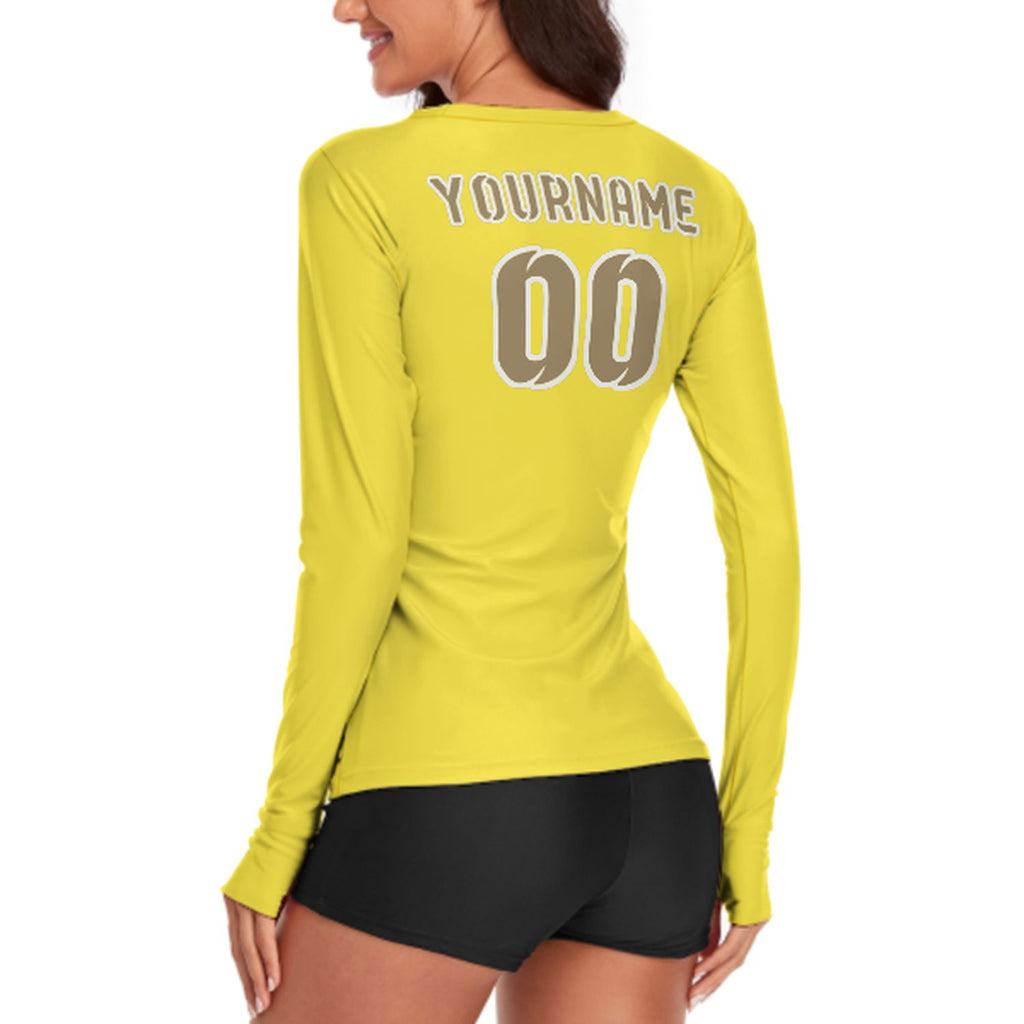 Custom Light Yellow Light Khaki Women's Long-Sleeve Shirt