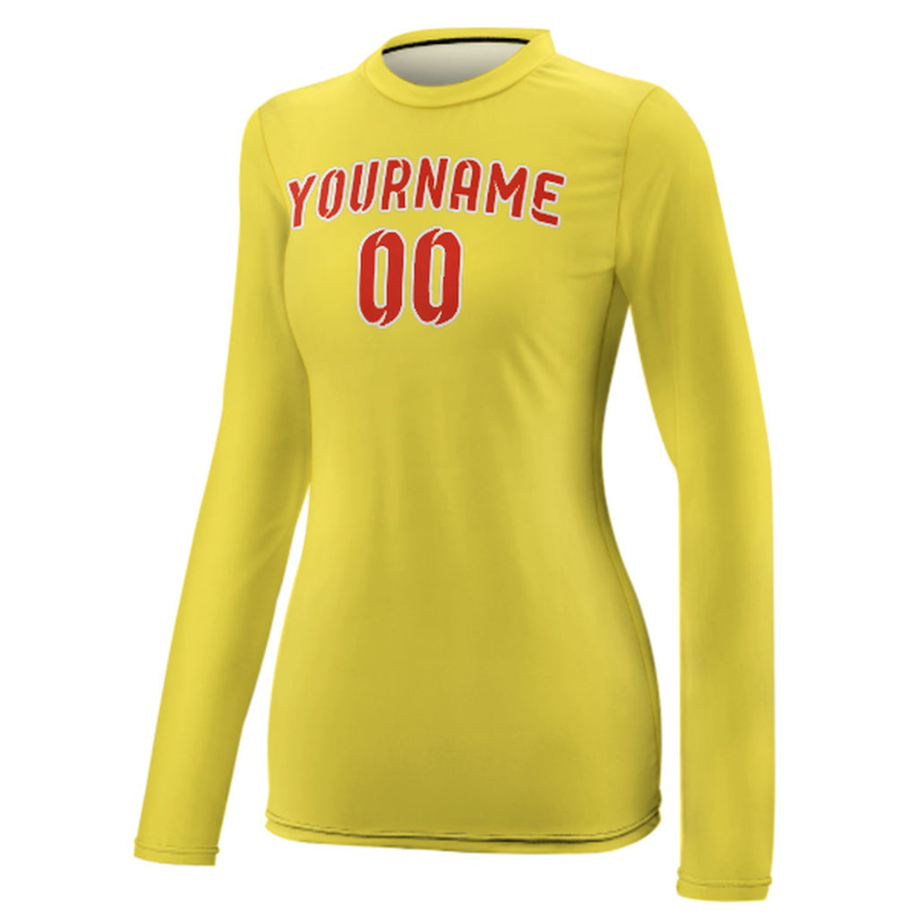Custom Light Yellow Orange Red Women's Long-Sleeve Shirt