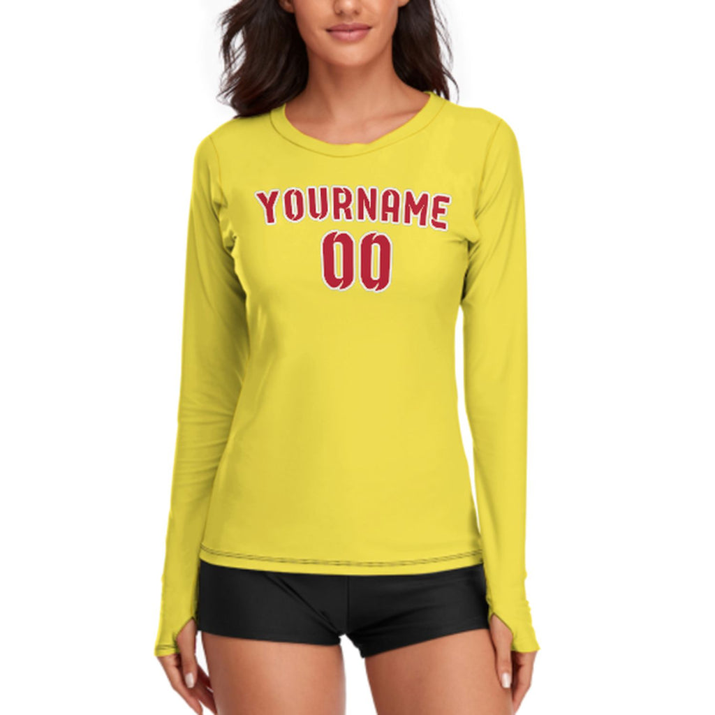 Custom Light Yellow Red Women's Long-Sleeve Shirt