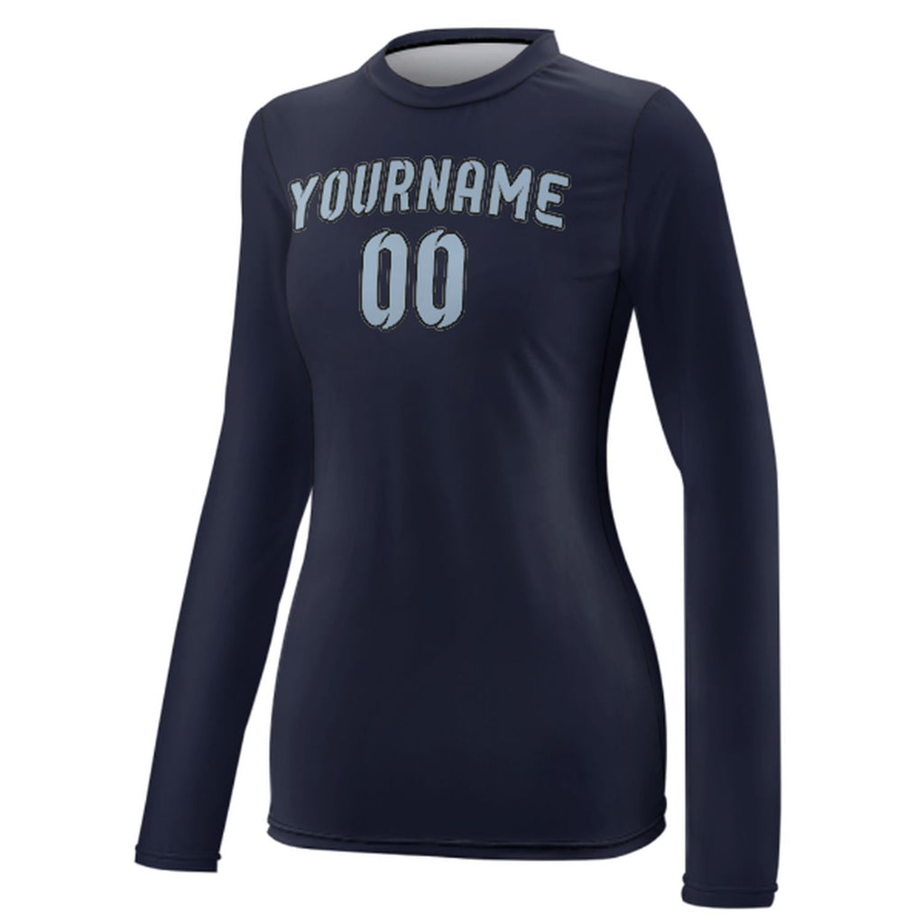 Custom Navy Light Blue Women's Long-Sleeve Shirt