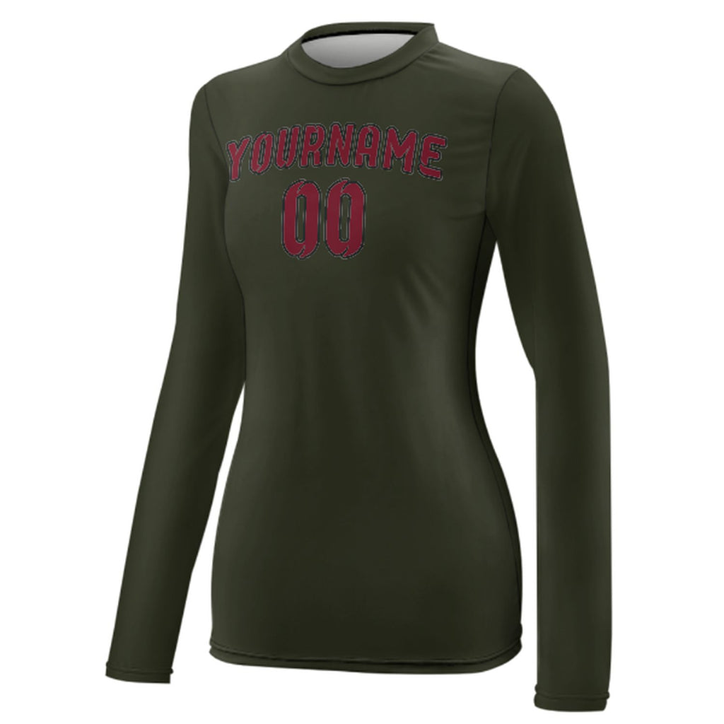 Custom Olive Crimson Red Women's Long-Sleeve Shirt
