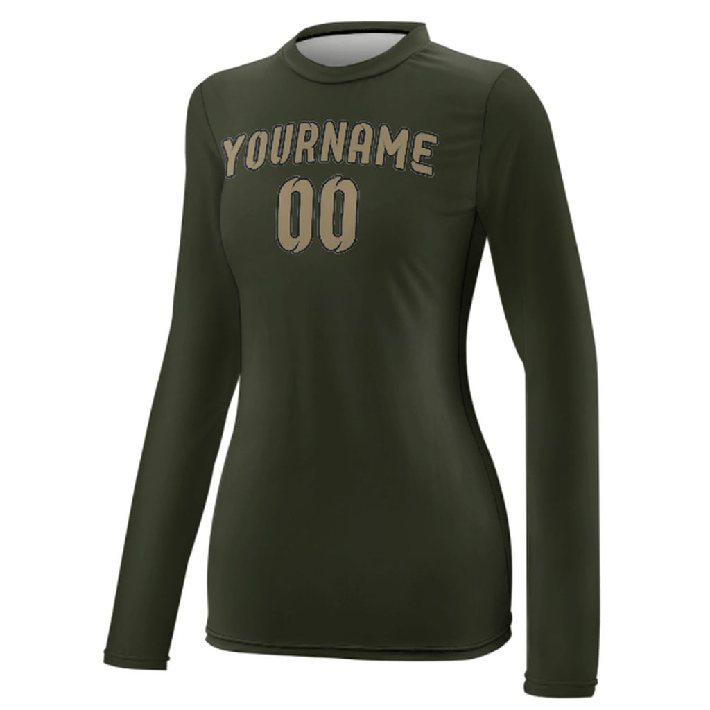 Custom Olive Light Khaki Women's Long-Sleeve Shirt