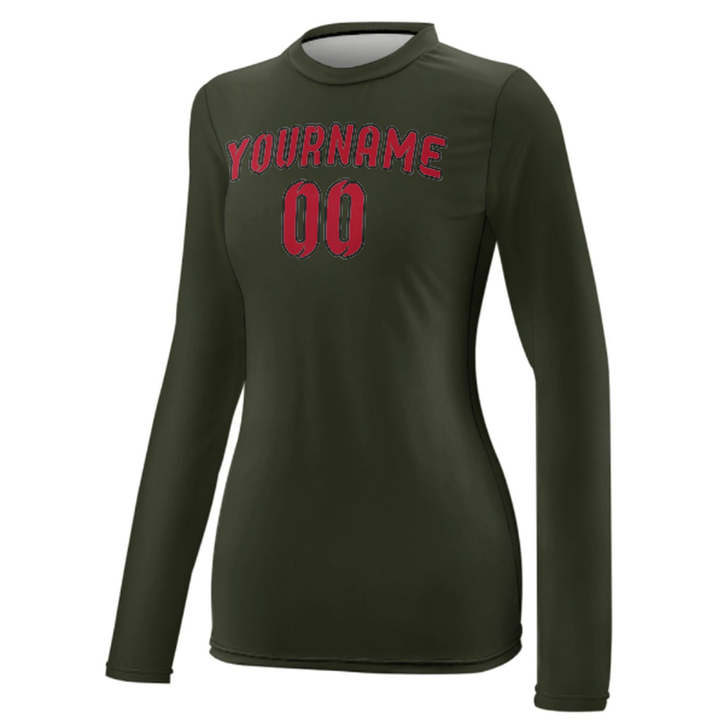 Custom Olive Red Women's Long-Sleeve Shirt