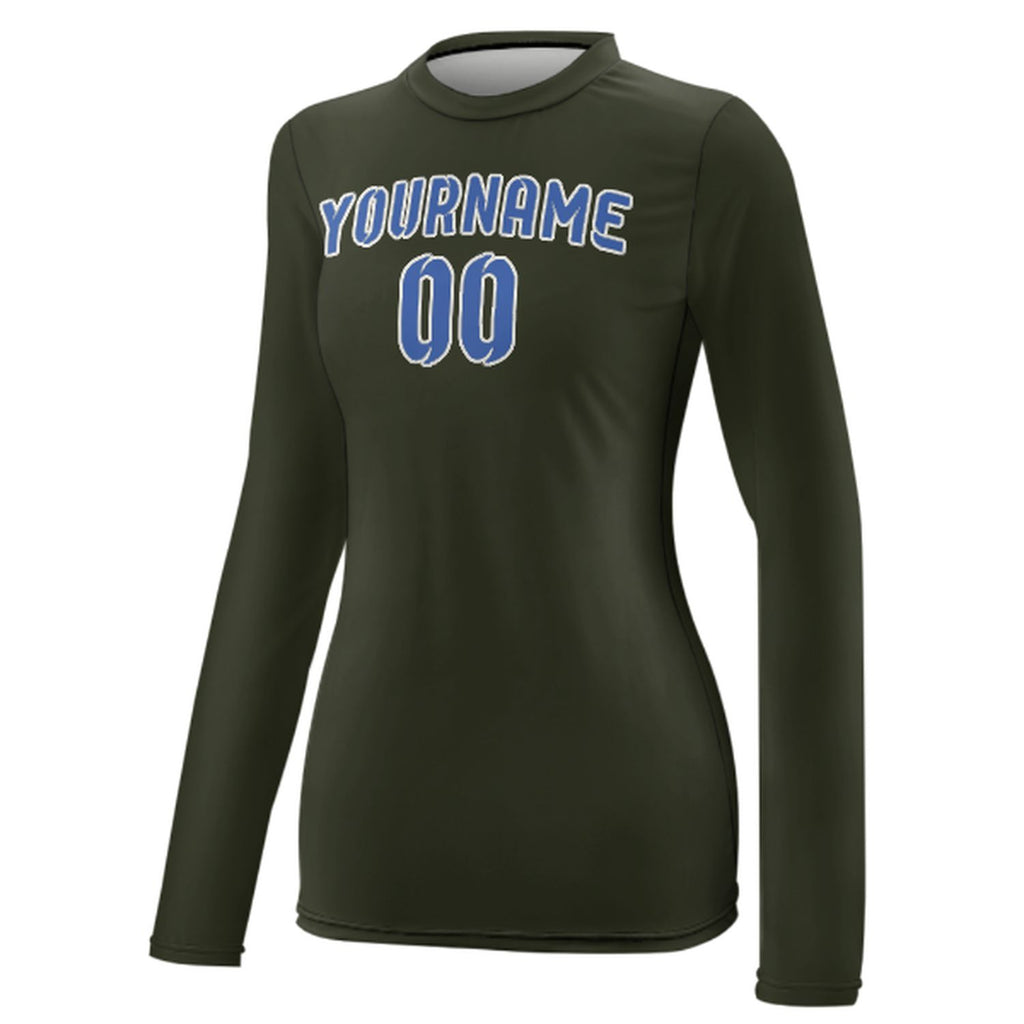 Custom Olive Sky Blue Women's Long-Sleeve Shirt
