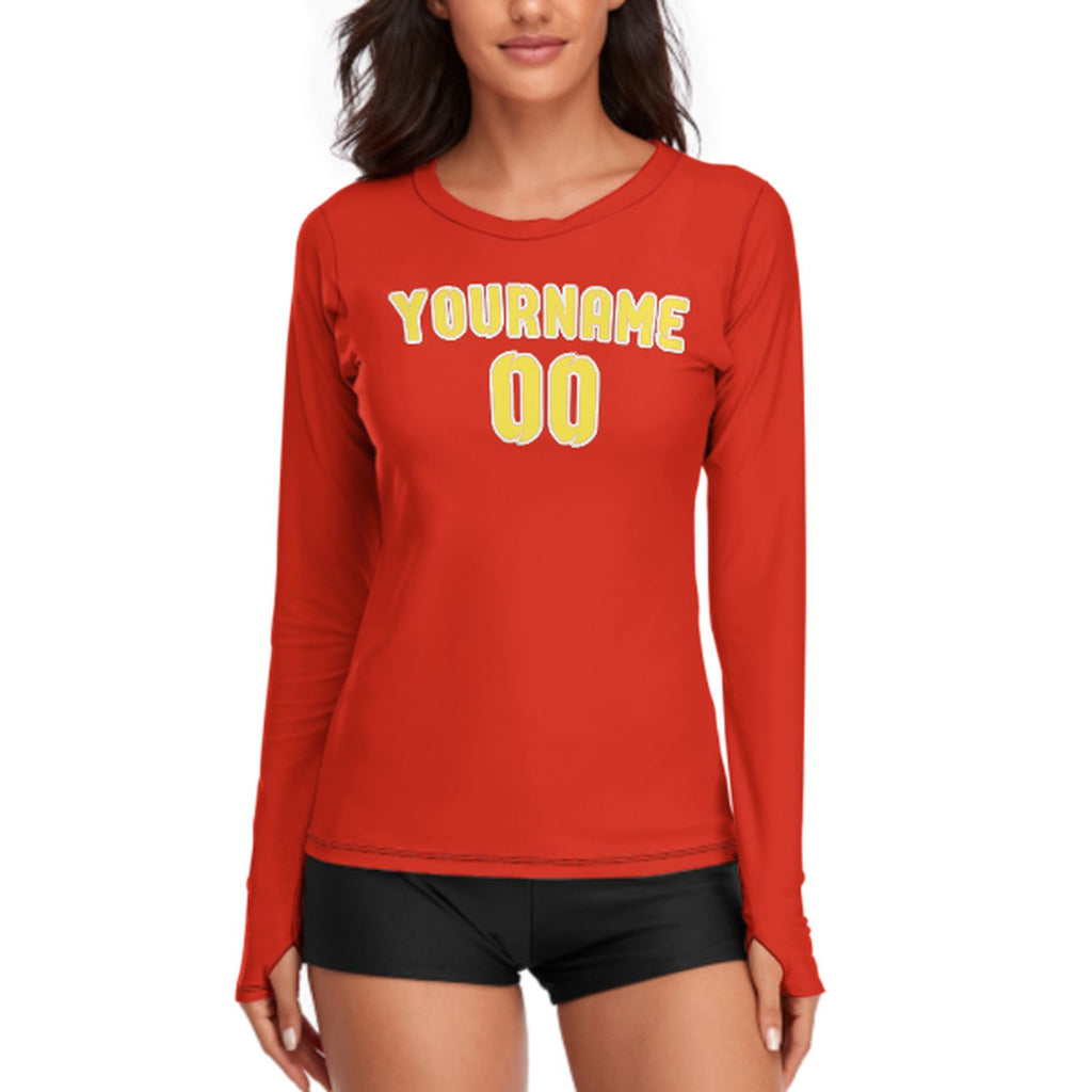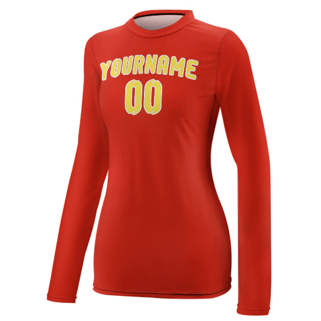 Custom Orange Red Light Yellow Women's Long-Sleeve Shirt