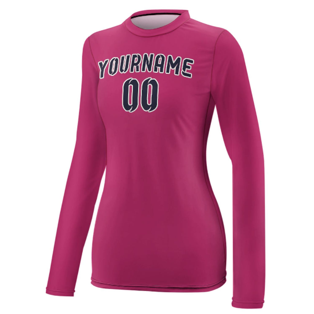 Custom Pink Navy Women's Long-Sleeve Shirt