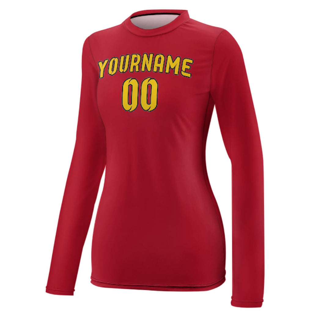 Custom Red Gold Women's Long-Sleeve Shirt
