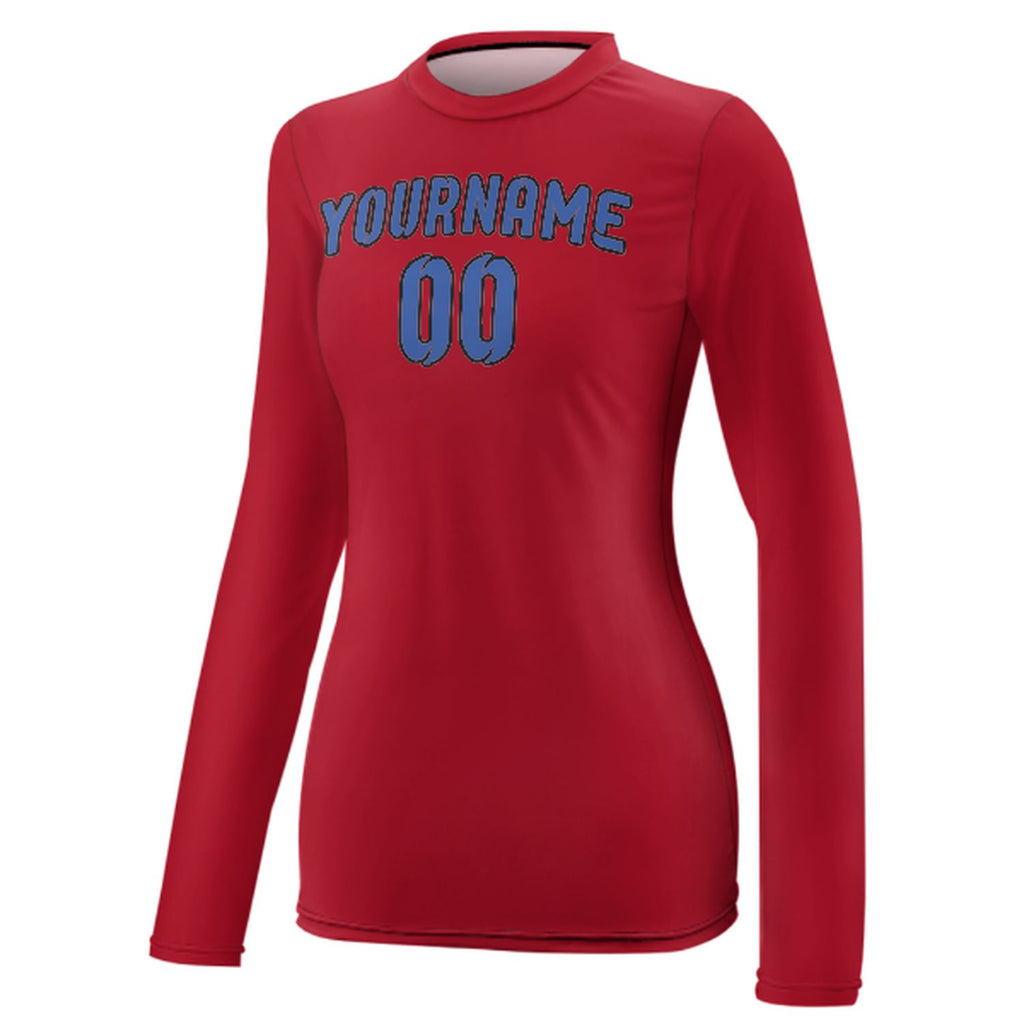 Custom Red Sky Blue Women's Long-Sleeve Shirt