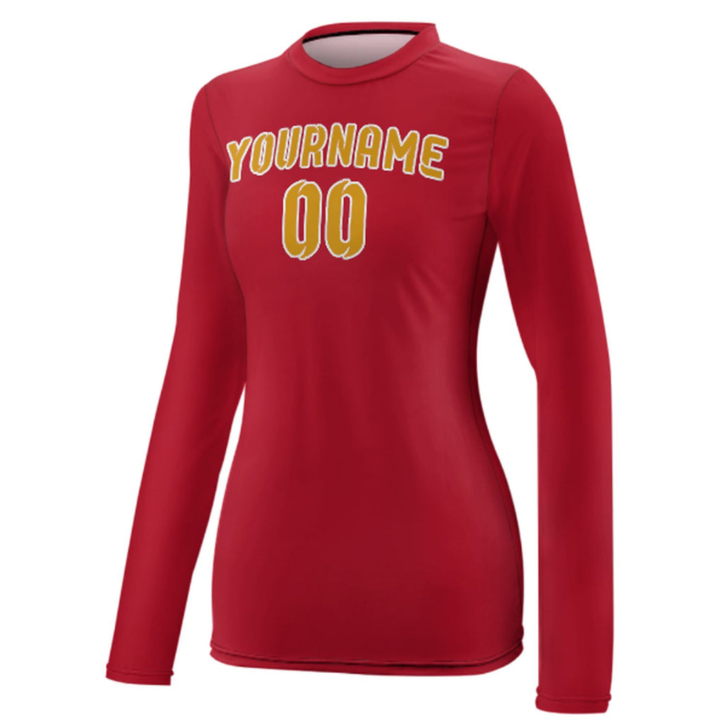 Custom Red Yellow Women's Long-Sleeve Shirt